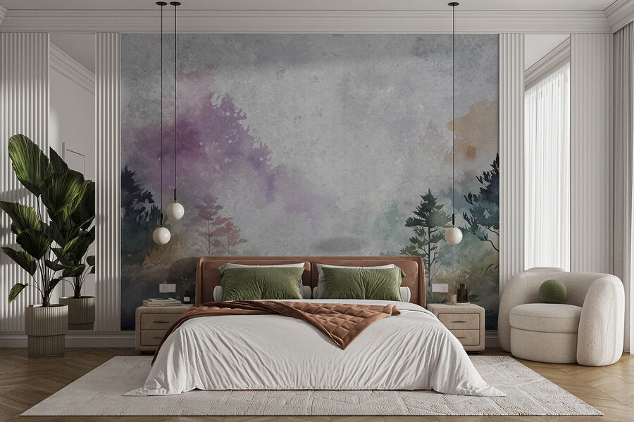Transform a dull wall into a dreamy escape with this stunning mural of trees and bushes. Picture walking through a misty forest, where every glance invites calm and tranquility. This watercolor mural brings nature indoors, blending soft greens with tranquil purples, creating a serene backdrop for any room. Imagine curling up with a good book, feeling like you’re nestled in a forest retreat. It’s like your personal slice of nature, minus the bugs and muddy shoes. Perfect for living rooms, bedrooms, or that cozy reading nook just waiting for a little lush magic.