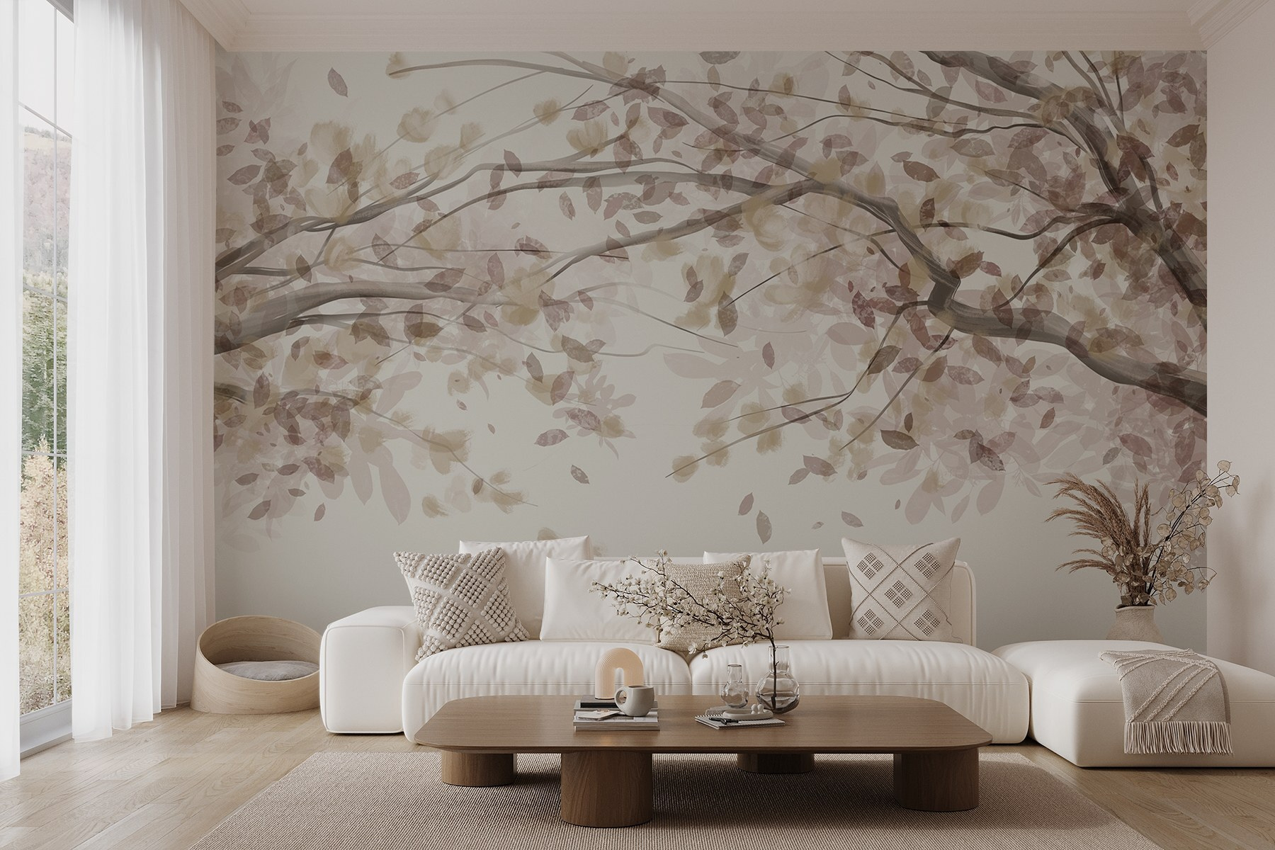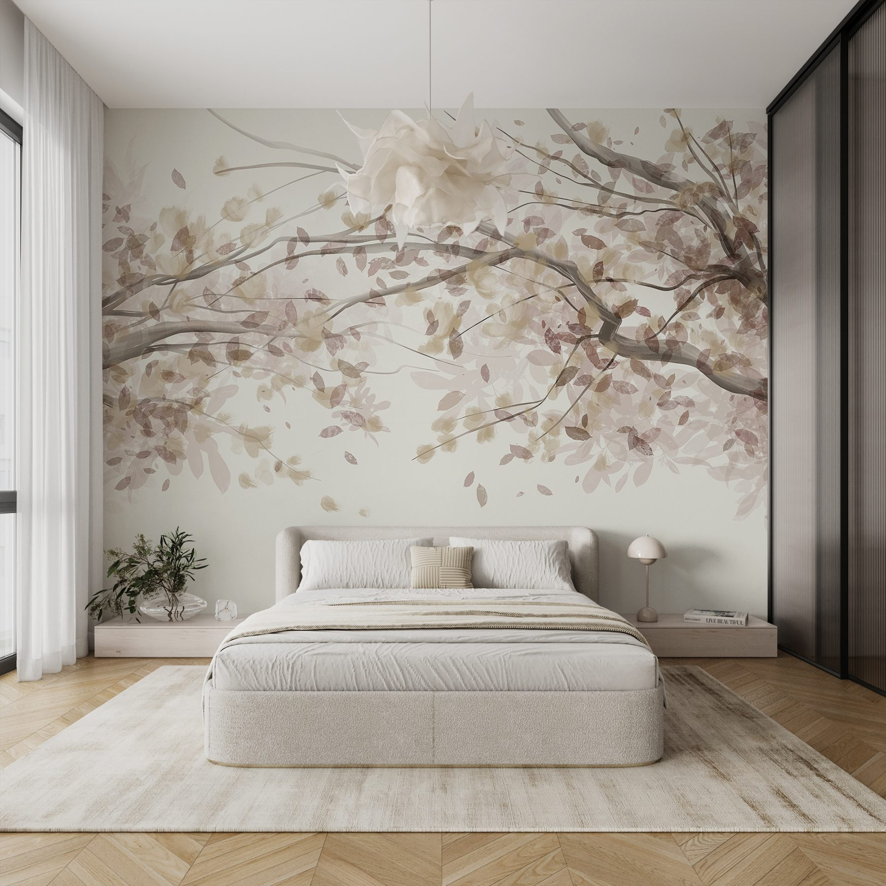 Introducing a mural that captures the essence of nature’s beauty—think of cozy mornings spent sipping tea under a cherry blossom tree. The delicate branches, swaying slightly in an imaginary breeze, invite a sense of calm and tranquility into any room. Shades of soft pink and warm earth tones create a gentle atmosphere, making it perfect for a serene bedroom or a vibrant living area that craves a touch of life. Picture this: friends come over, and they can’t help but admire the beautiful backdrop while sharing stories. It’s more than just a wall decoration; it’s a conversation starter and a little escape into a peaceful garden. Let this mural transport you, even if just for a moment, to a serene, sunlit grove.