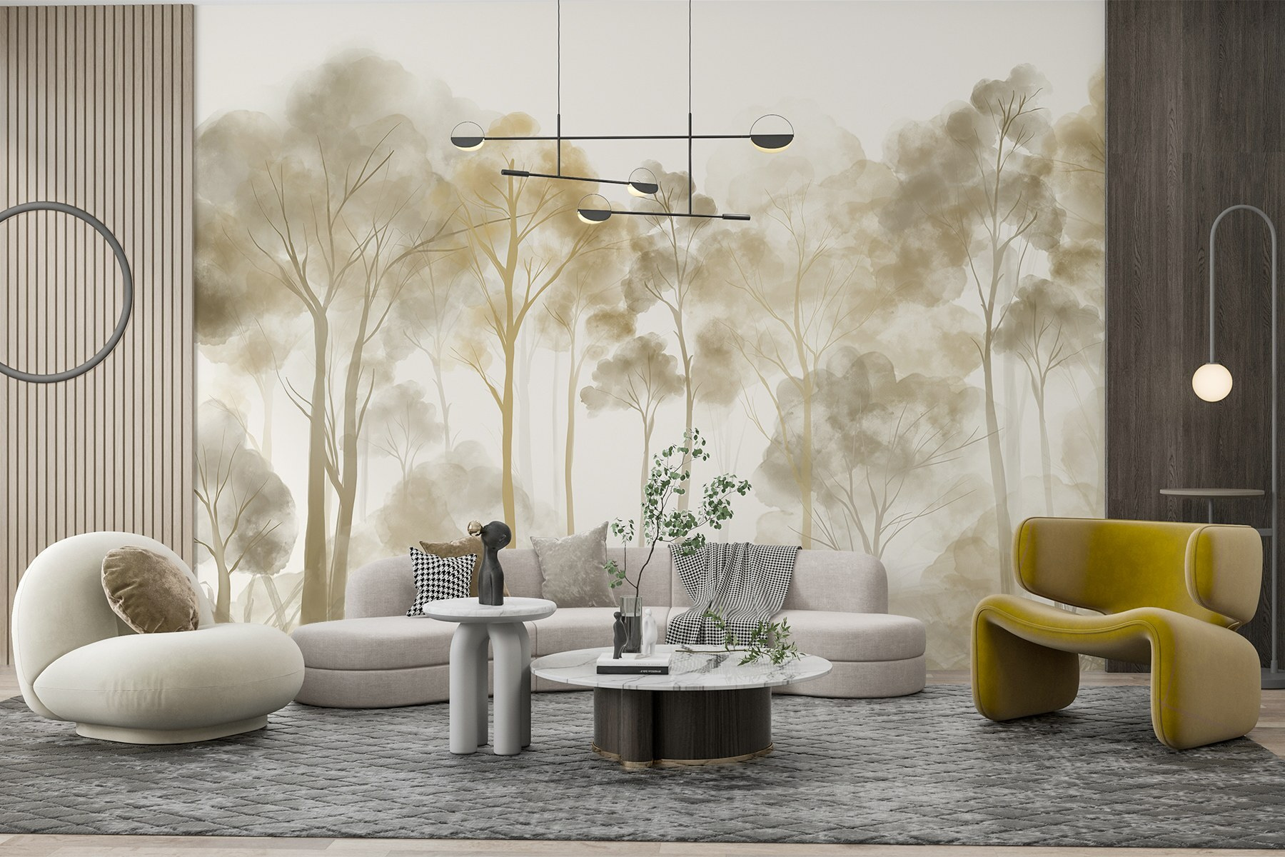 Imagine stepping into a serene, foggy forest without leaving your cozy home. This beautiful mural of trees brings the tranquility of nature right to your wall. The gentle hues and soft shapes create a calming atmosphere, perfect for unwinding after a busy day. It’s like wrapping yourself in a cozy blanket of stillness. Friends might wander in and stop for a moment, captivated by how it seems to breathe life into the space. Perfect for a living room, bedroom, or any corner that could use a touch of nature. Plus, who doesn’t love a little forest magic every day?