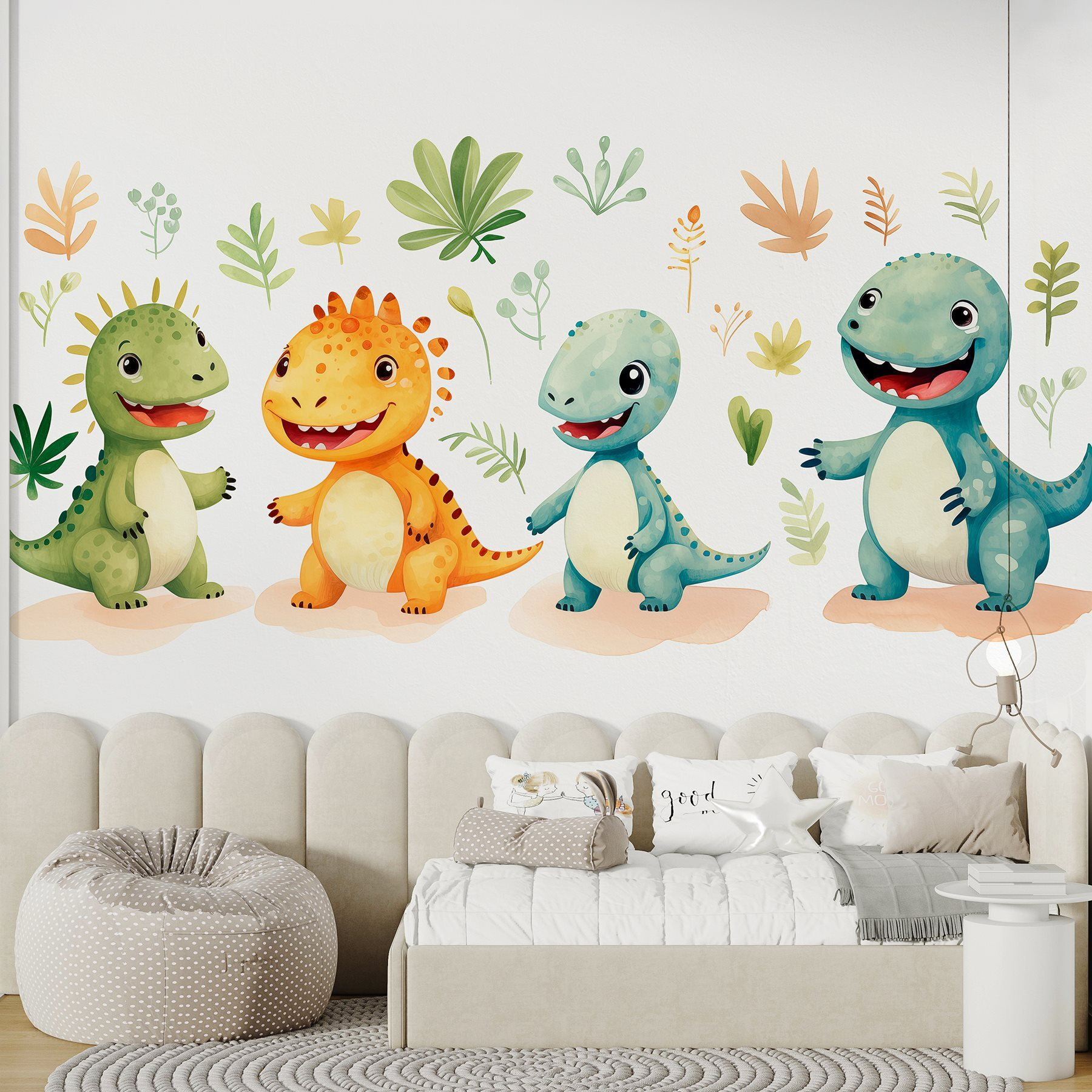 Transform a room into a vibrant dinosaur wonderland with this delightful wall mural featuring a lively group of cartoon dinosaurs. These friendly little guys, each with their own quirky charm, are perfect for sparking the imagination of young adventurers. Imagine kids bouncing out of bed, their eyes lighting up at the sight of these cheerful creatures! The playful colors and fun patterns add a splash of joy to any space. Whether it’s a nursery or a kid’s playroom, this mural will make for endless giggles and stories of prehistoric adventures. Who wouldn’t want to share their space with such huggable dino pals?