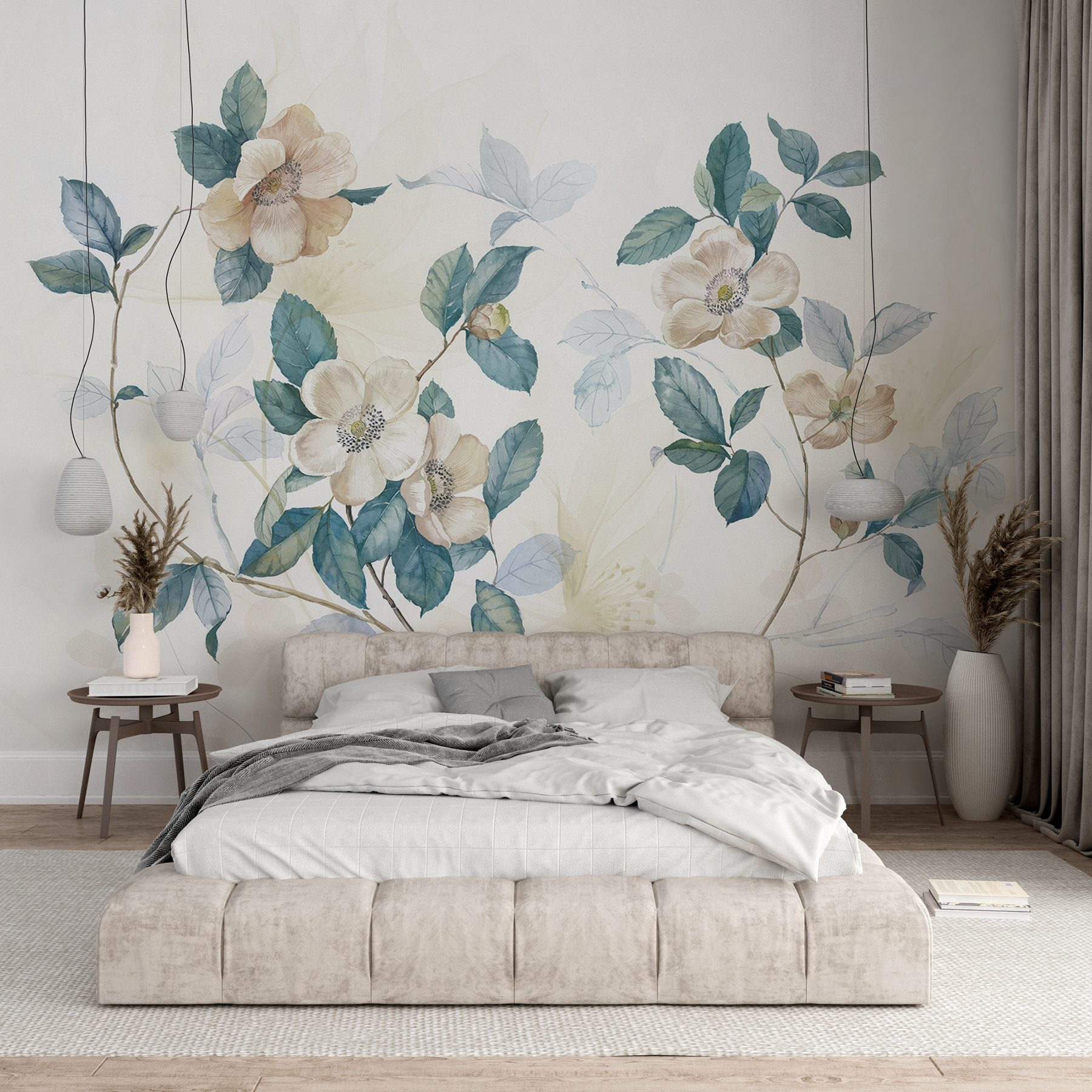 Transforming a plain wall into a blooming oasis is a game-changer, and this wall mural prints a stunning scene of flowers and leaves that’ll make anyone stop and admire. Imagine walking into a room where soft, watercolor blossoms appear to dance across the space, bringing a fresh vibe that whispers “nature, but indoors.” It’s like having a peaceful garden right at home. Whether it’s in the living room, bedroom, or a cozy nook, this artwork adds a touch of charm. It’d even inspire daydreams about springtime strolls—who wouldn’t love that? A little sprinkle of nature’s beauty can really uplift the spirit, making every day feel a bit brighter, like that first cup of coffee in the morning. Perfect for creating a serene escape right in your living space!