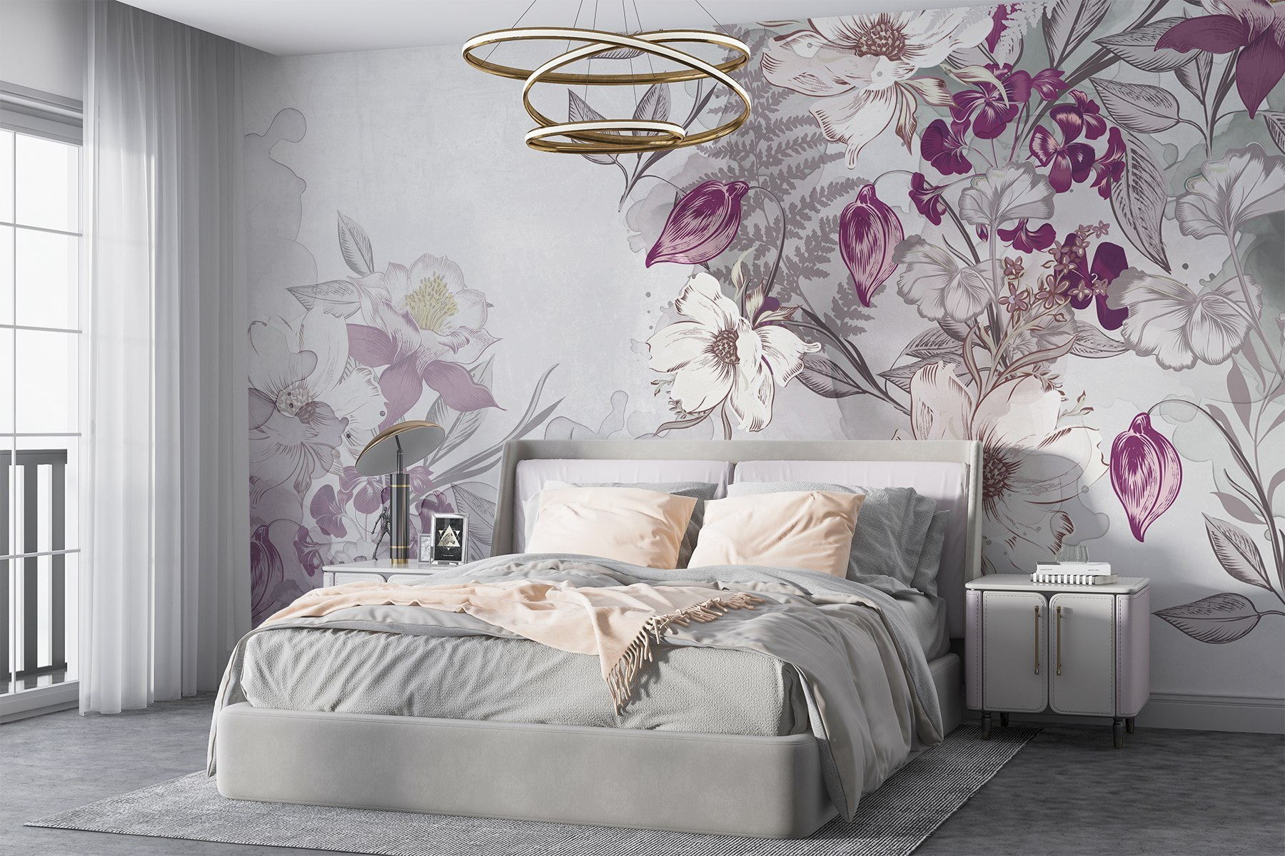 Step into a serene garden with this delightful mural, featuring delicate blooms wrapped in soft, muted tones. It’s like bringing a whisper of nature indoors, perfect for brightening any room. Imagine sipping coffee while admiring these lovely flowers; they almost seem to sway with the breeze. Whether it’s your cozy nook or a lively living area, these blossoms add a charming touch without overwhelming the space. Guests might even find themselves daydreaming a little longer, lost in the beauty of this floral wonder. Easy on the eyes and calming for the soul—who wouldn’t want that?