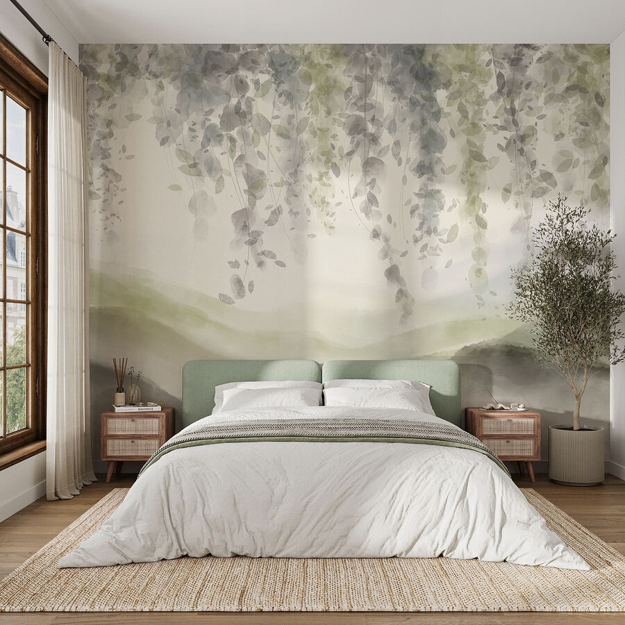 Step into a serene getaway right in your own space with this lovely wall mural. Imagine gazing up at delicate leaves cascading down, as they gently sway and whisper stories of tranquil landscapes. The soft watercolor hues create a dreamy vibe, perfect for unwinding after a long day. Whether in a cozy reading nook or a lively living room, this mural brings nature indoors, inviting a refreshing breath of fresh air. It’s like having a little slice of the great outdoors—all the calm, none of the bugs. A true delight for the senses!