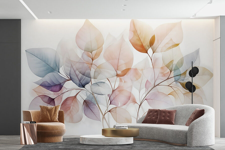 Transform a dull wall into a serene oasis with this delightful mural featuring delicate leaves in soft hues. Imagine walking into a room and feeling that instant calm wash over you—like a gentle breeze on a warm day. The watercolor design creates a dreamy atmosphere, perfect for unwinding after a long day or inspiring creativity during those “what should I do next?” moments. Pair it with cozy furniture and some potted plants, and voilà! You’ve got an inviting space that feels both fresh and sophisticated. It’s nature indoors, and who doesn’t love that?