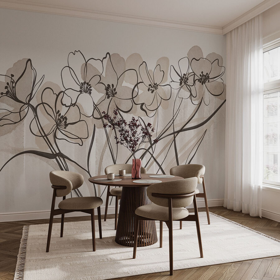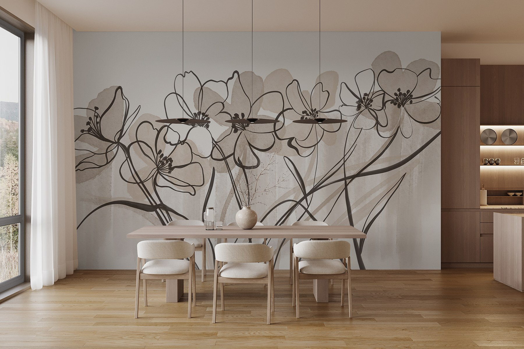 Brighten up any room with this delightful wall mural featuring a line of flowers on a soft white background. It’s like bringing a little garden indoors, minus the watering can and pesky bees. The gentle watercolor vibes make it feel airy and light, perfect for that cozy nook or feature wall that just needs a sprinkle of charm. Picture sipping coffee while gazing at those graceful blooms, feeling instantly uplifted—who even needs a bouquet when you’ve got this beauty? Transform your space into a delightful retreat with this artistic touch.