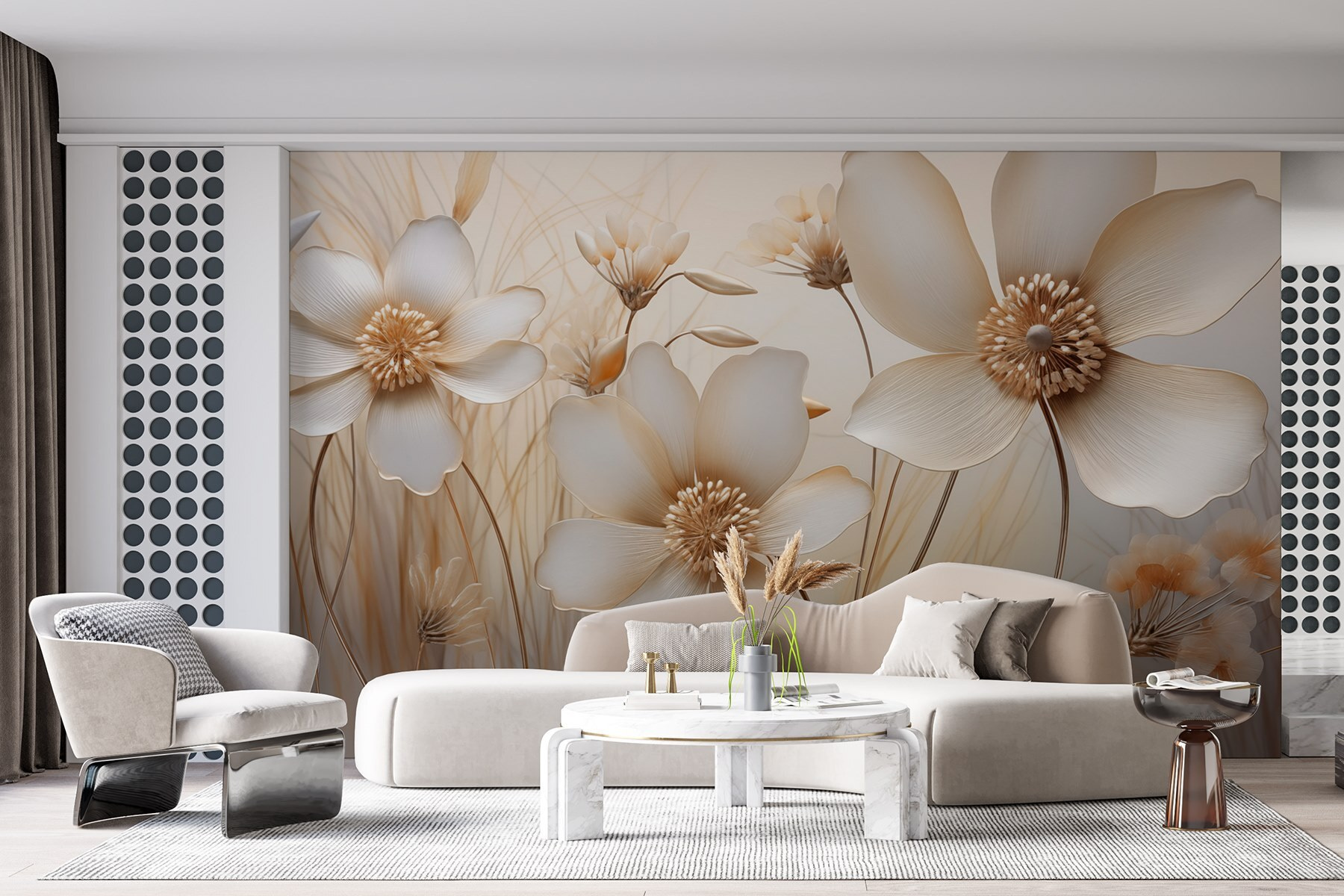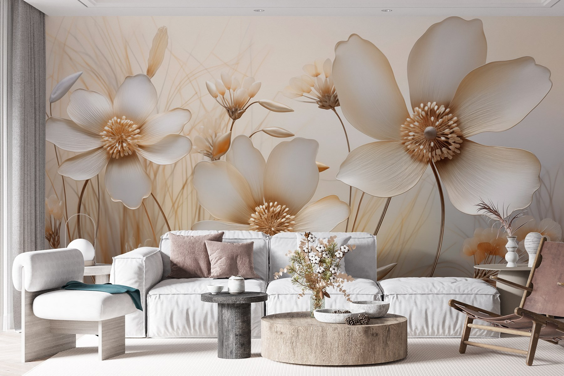 Transform any space into a serene escape with this charming mural featuring delicate flowers in soft hues. It’s like bringing a gentle garden inside, minus the pesky pollen! Imagine waking up to these graceful blooms, feeling the day start off on a peaceful note. Perfect for a cozy reading nook or a tranquil bedroom, this mural whispers elegance. Friends will think you’ve had a botanical makeover, and you might even find yourself pausing just to admire it. Soft lines and muted shades create a warm embrace for your walls, making every moment a little sweeter. Perfect for those who appreciate beauty in simplicity!