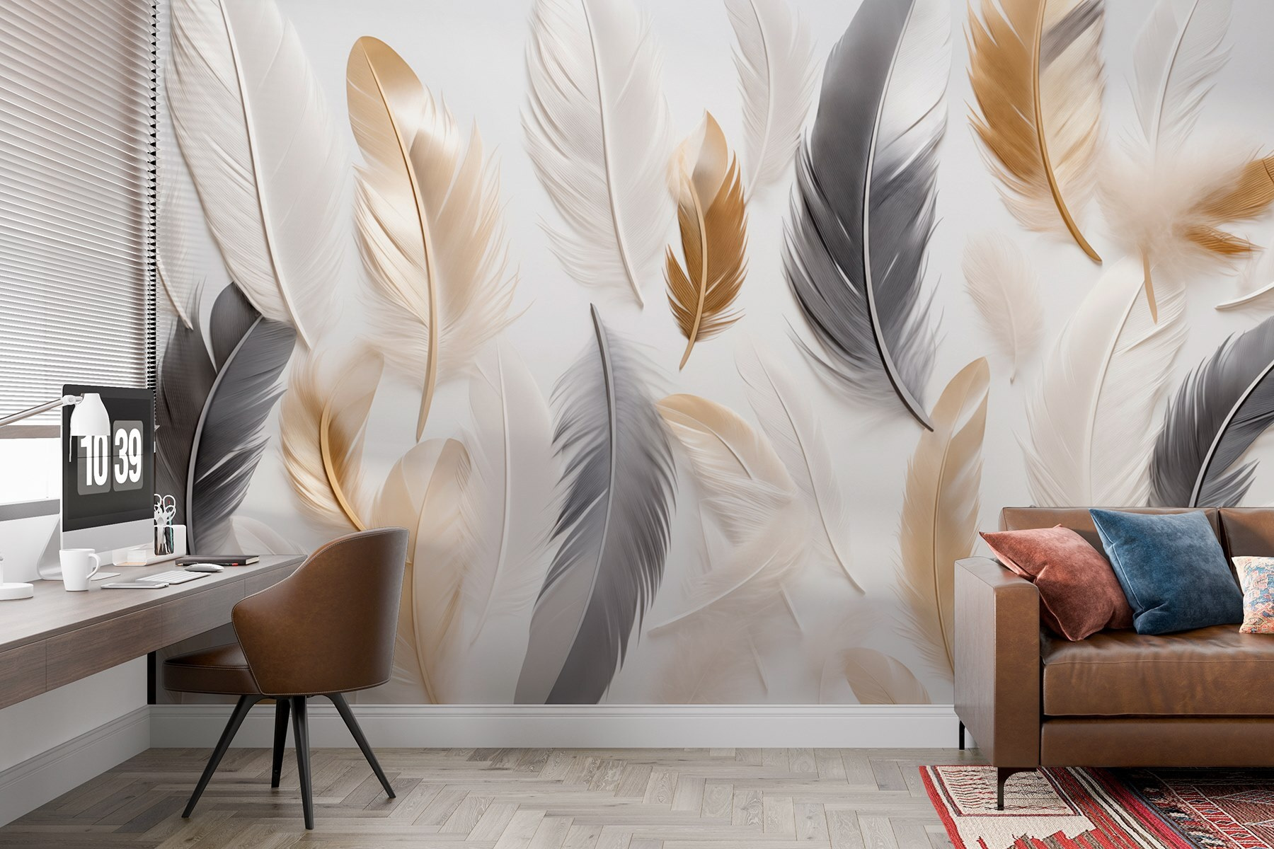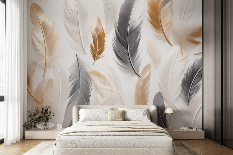 Transform any space with this captivating wall mural featuring a collection of feathers resting gently on a crisp white backdrop. It’s like bringing a touch of nature indoors without the hassle of cleaning up after a feathered friend. Imagine how this artwork could add a soft, airy vibe to a bedroom or a cozy nook for reading—a true sanctuary for the soul. The way each feather flows together creates a beautiful rhythm, almost inviting a moment of blissful daydreaming. Perfect for those who appreciate subtle elegance and want to evoke a serene atmosphere. Why not let your walls whisper serenity?