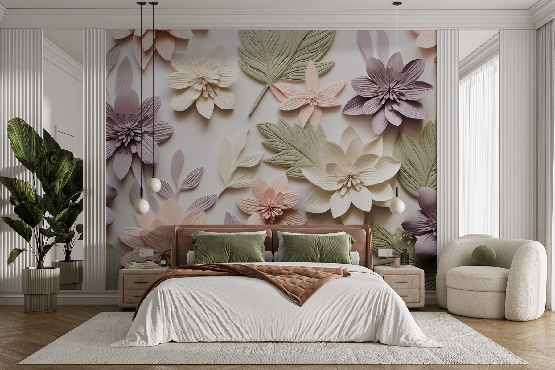Transform your space into a serene garden every day with this charming mural of flowers and leaves. It’s like bringing a piece of nature indoors without the watering can. The gentle colors and intricate shapes create a soft backdrop that invites calm vibes. Picture sipping coffee while basking in the warmth of this floral embrace—it’s a mini getaway right in your living room. Friends might ask if you’ve hired a decorator, and you can just smile and nod, keeping the secret of your stylish choice. Perfect for brightening up any wall, this mural adds a touch of whimsy and warmth that feels just right. Whether it’s a cozy nook or a lively entryway, it’s sure to spark joy.