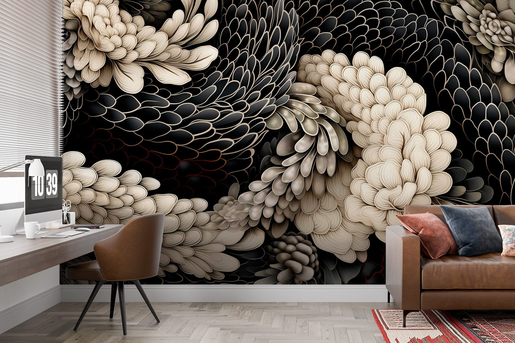 Transform your space with this stunning mural featuring intricate patterns in soft, neutral tones. Imagine walking into a room and being greeted by this beautiful design that feels both calming and sophisticated. It’s like a cozy blanket for your walls, drawing the eye and sparking joy. The flow of the patterns adds a touch of whimsy, making it a perfect backdrop for your favorite photos or cherished memories. It whispers elegance while still being fun. This mural could easily turn an ordinary wall into a conversation starter—just imagine your guests’ reactions!
