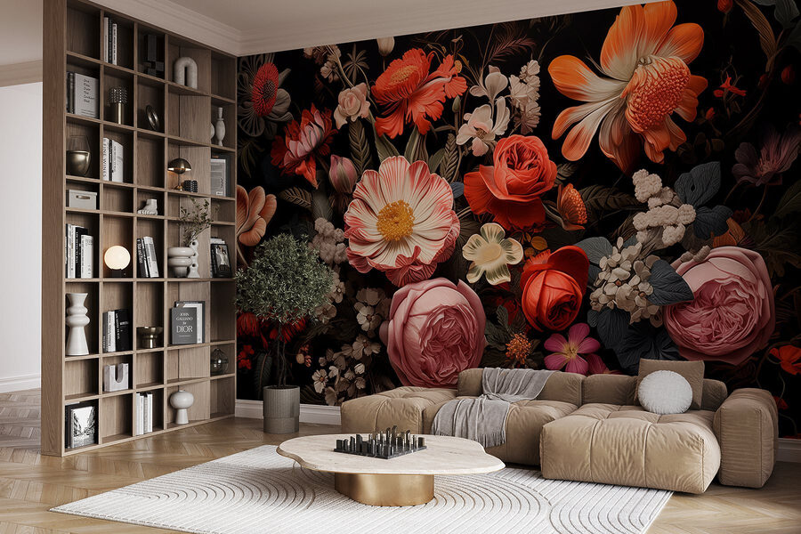 Spruce up your space with this stunning wall mural featuring a vibrant bouquet of flowers against a deep black backdrop. The colors pop like a confetti explosion, making every day feel like a celebration. Imagine walking into your room and feeling instantly uplifted, as if you’ve stepped into a lush garden without leaving home. Perfect for those days when your plants just can’t keep up. Whether it’s a cozy nook or a more open area, this mural brings a touch of joy and warmth that makes it hard not to smile. It’s like having a new friend on your wall—one that never wilts!