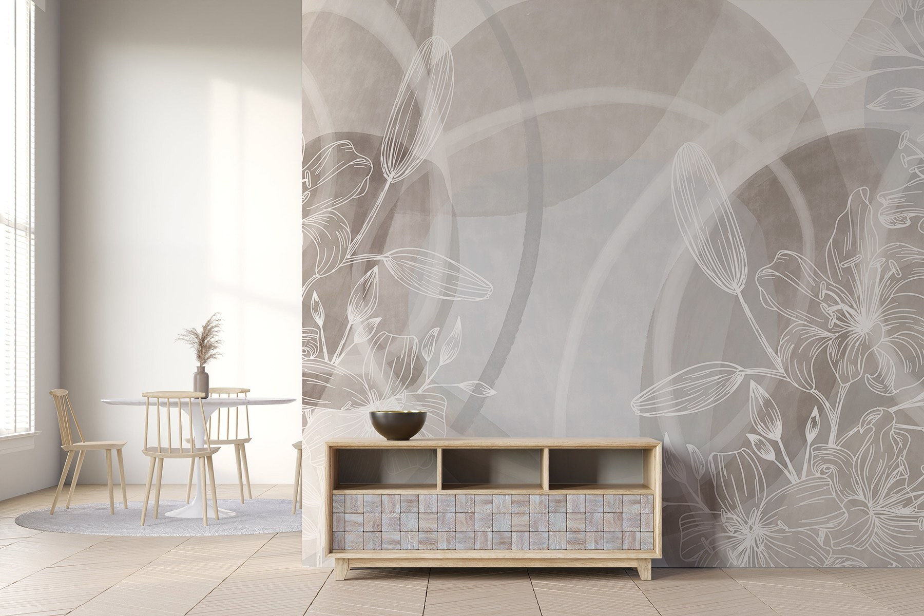 Transform your space into a serene oasis with this wall mural featuring an elegant floral design in soft, muted tones. Imagine walking into a room that feels like a gentle spring morning, where every glance at the wall brings calm vibes and a hint of nature’s beauty. Perfect for a cozy reading nook or that blank wall begging for attention, this mural whispers elegance without shouting for it. Friends might ask if you’ve gone all “interior designer,” and you can just smile, letting them think you’ve got a secret stash of design tips. Let the floral patterns dance subtly, creating a backdrop that soothes the senses and inspires those lazy afternoons.