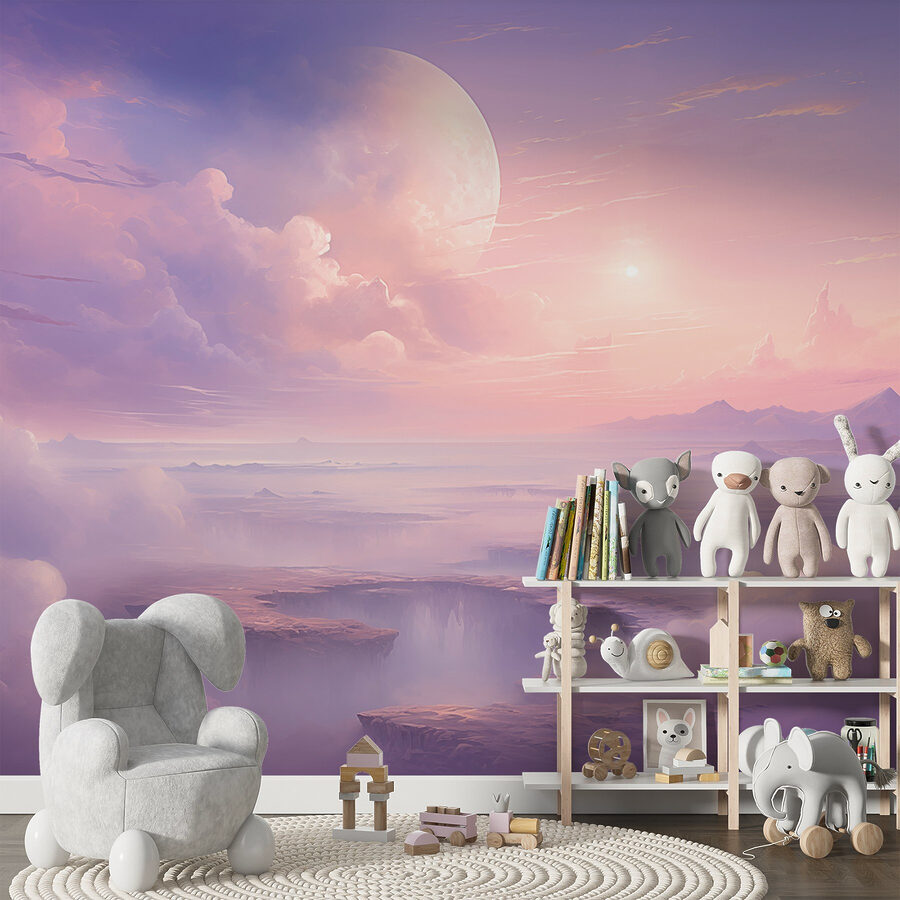 Transform any space with this stunning wall mural! “Landscape with Clouds and a Moon” brings a dreamy touch that feels like stepping into a serene sunset in a mystical world. Imagine having a soft, pastel sky as your backdrop, where fluffy clouds and a gentle moon reign supreme. Perfect for creating a calming atmosphere, it pairs beautifully with cozy furniture or a simple plant nook. Friends might wander in, stopping dead in their tracks, thinking you’ve somehow scored a view of the horizon. Who needs a vacation? Just hang this masterpiece and let your imagination drift away.