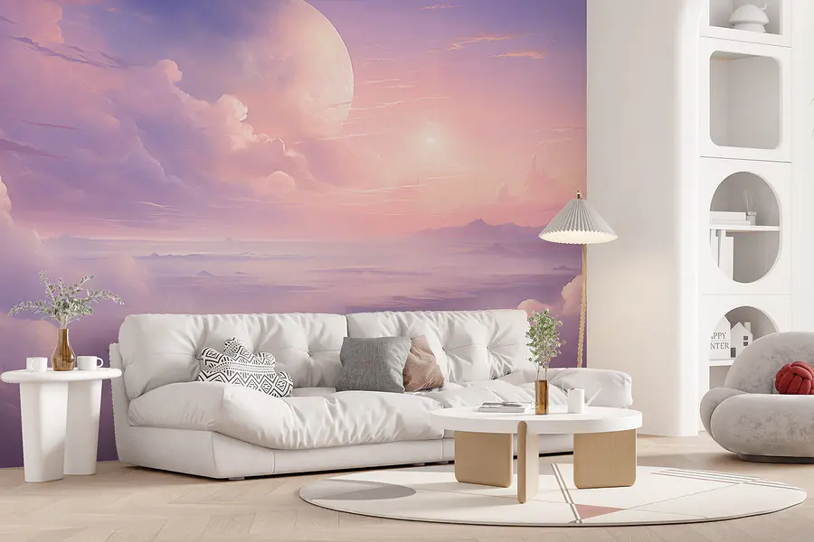 Transform any space with this stunning wall mural! “Landscape with Clouds and a Moon” brings a dreamy touch that feels like stepping into a serene sunset in a mystical world. Imagine having a soft, pastel sky as your backdrop, where fluffy clouds and a gentle moon reign supreme. Perfect for creating a calming atmosphere, it pairs beautifully with cozy furniture or a simple plant nook. Friends might wander in, stopping dead in their tracks, thinking you’ve somehow scored a view of the horizon. Who needs a vacation? Just hang this masterpiece and let your imagination drift away.
