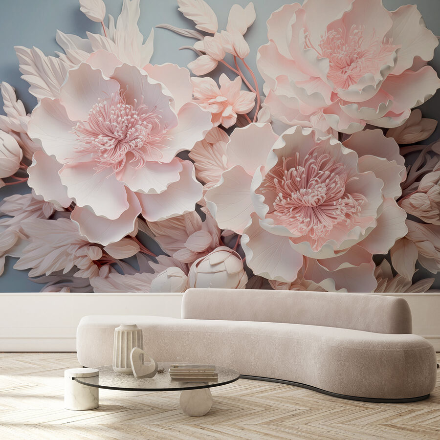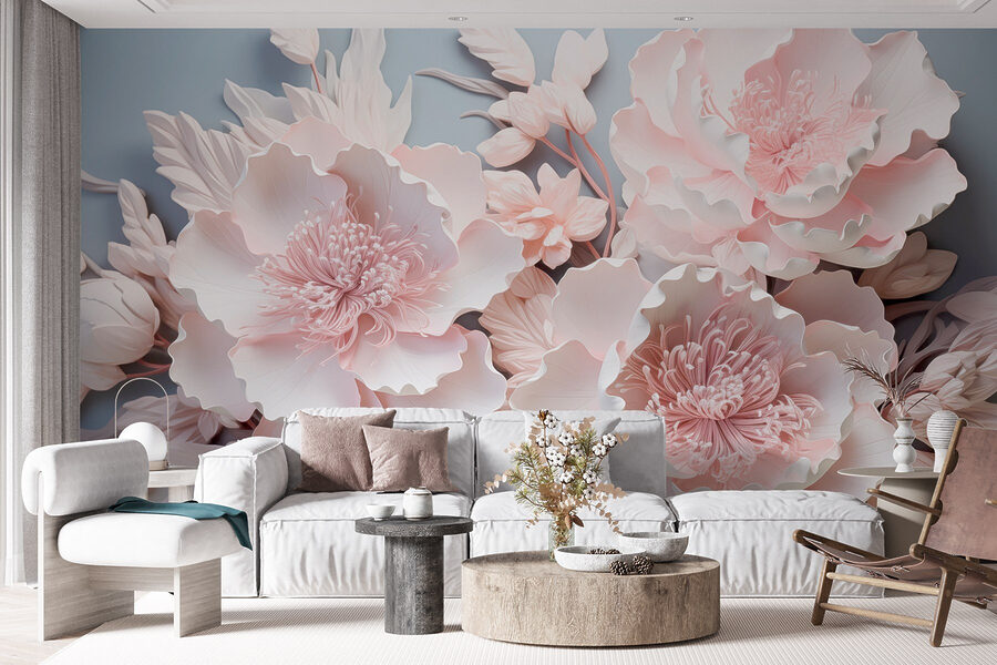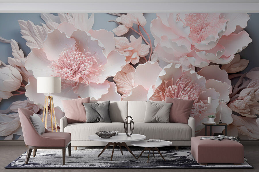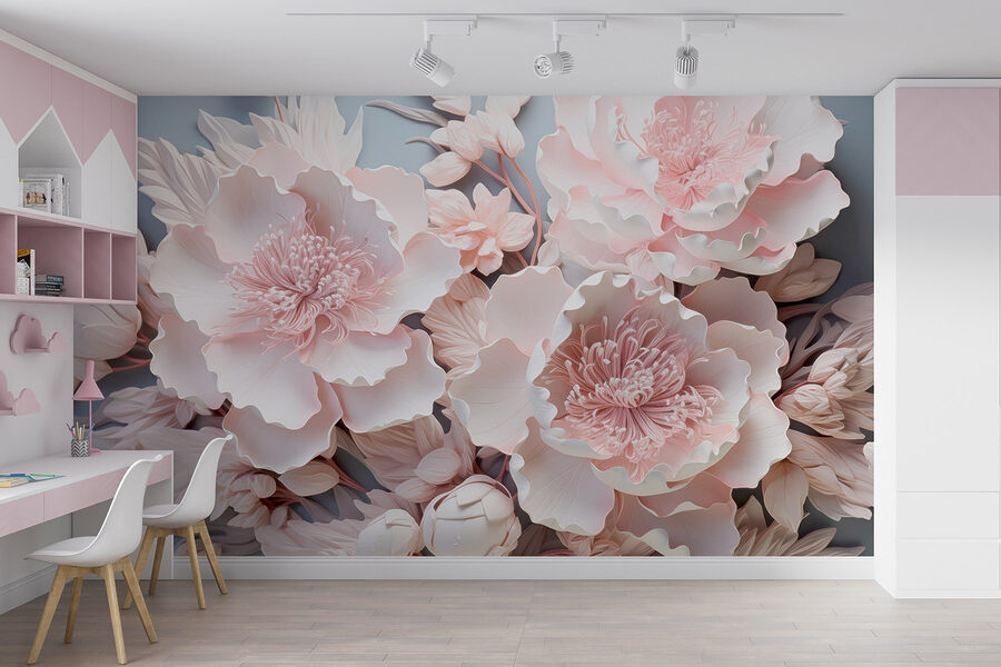 Brighten up any room with this enchanting mural featuring a group of white flowers. Imagine walking into your space, and there they are—peonies as big as your imagination, sprouting with delicate petals and soft colors that almost whisper peace. It’s like bringing a garden indoors, all while enjoying the elegance of nature without the pollen! Friends might just stop by and find themselves awestruck by this floral charm. Perfect for living rooms, bedrooms, or that quiet reading nook. Who wouldn’t want to feel like they’re nestled in a serene blossom every day?