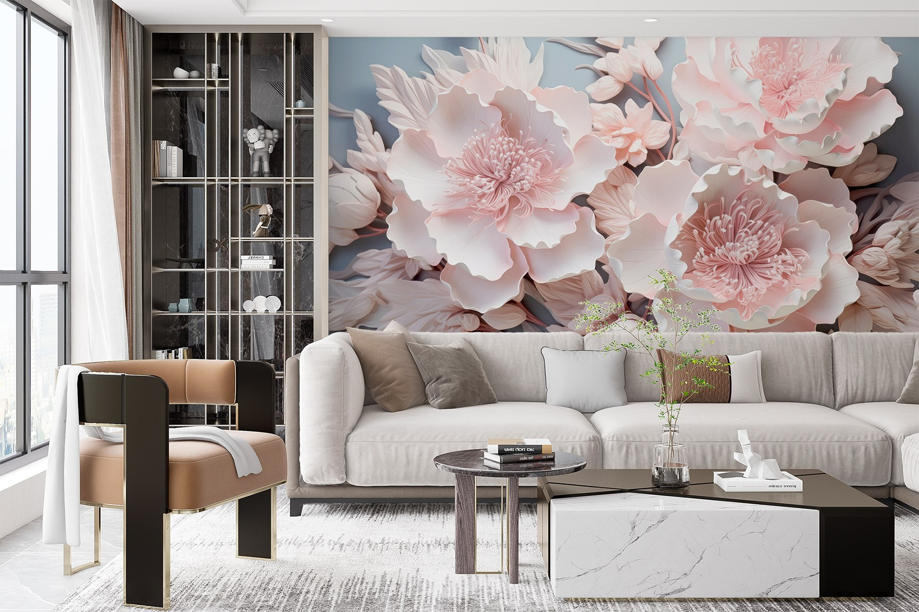 Brighten up any room with this enchanting mural featuring a group of white flowers. Imagine walking into your space, and there they are—peonies as big as your imagination, sprouting with delicate petals and soft colors that almost whisper peace. It’s like bringing a garden indoors, all while enjoying the elegance of nature without the pollen! Friends might just stop by and find themselves awestruck by this floral charm. Perfect for living rooms, bedrooms, or that quiet reading nook. Who wouldn’t want to feel like they’re nestled in a serene blossom every day?