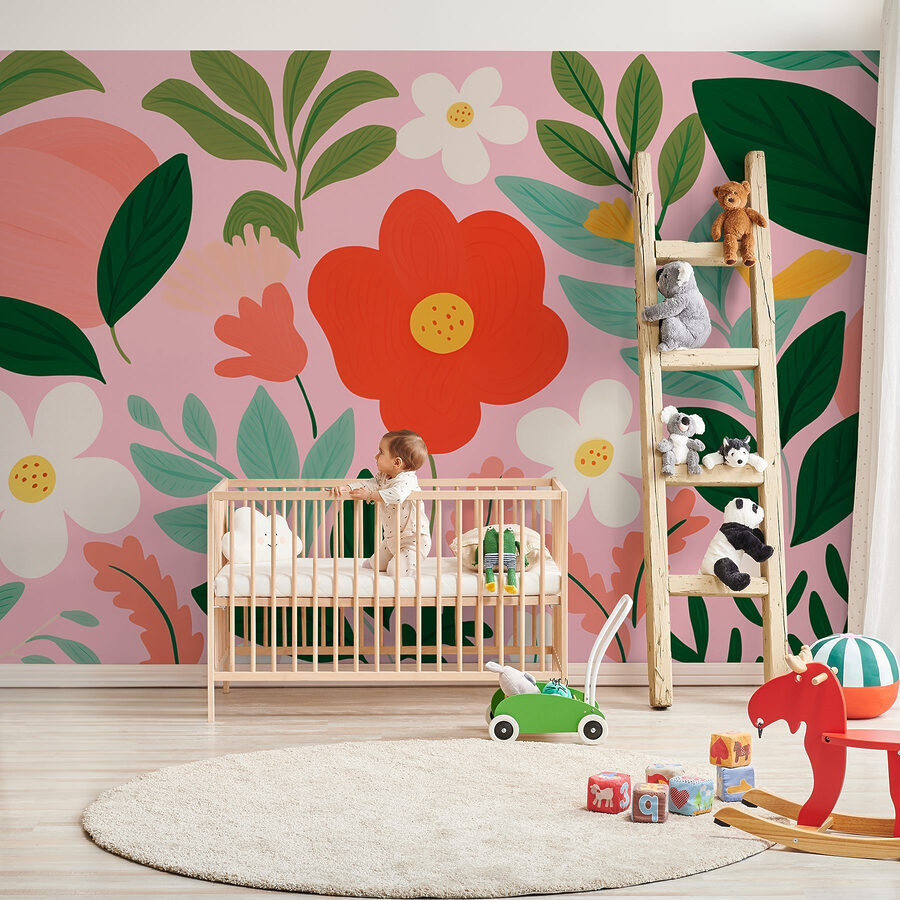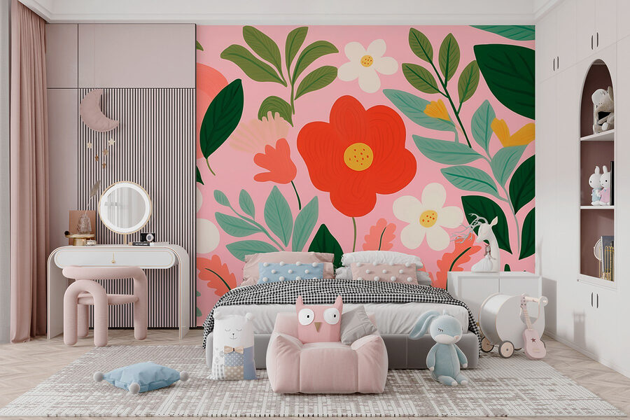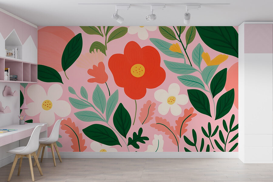 Transforming a space doesn’t get much easier or more vibrant than with this wall mural. Imagine stepping into a room where lively flowers and fresh greenery instantly lift the mood. It’s like bringing a garden indoors without the watering can fuss! The playful mix of colors dances on a gentle pink backdrop, perfect for brightening up a cozy nook or making a statement in an entryway. Friends will wonder how the room radiates such warm energy. Plus, it’s just the right amount of stylish—like wearing your favorite comfy sweater but looking polished. It’s a fresh twist that makes every glance feel like a mini vacation. Perfect for those who believe every wall deserves a little love and personality!
