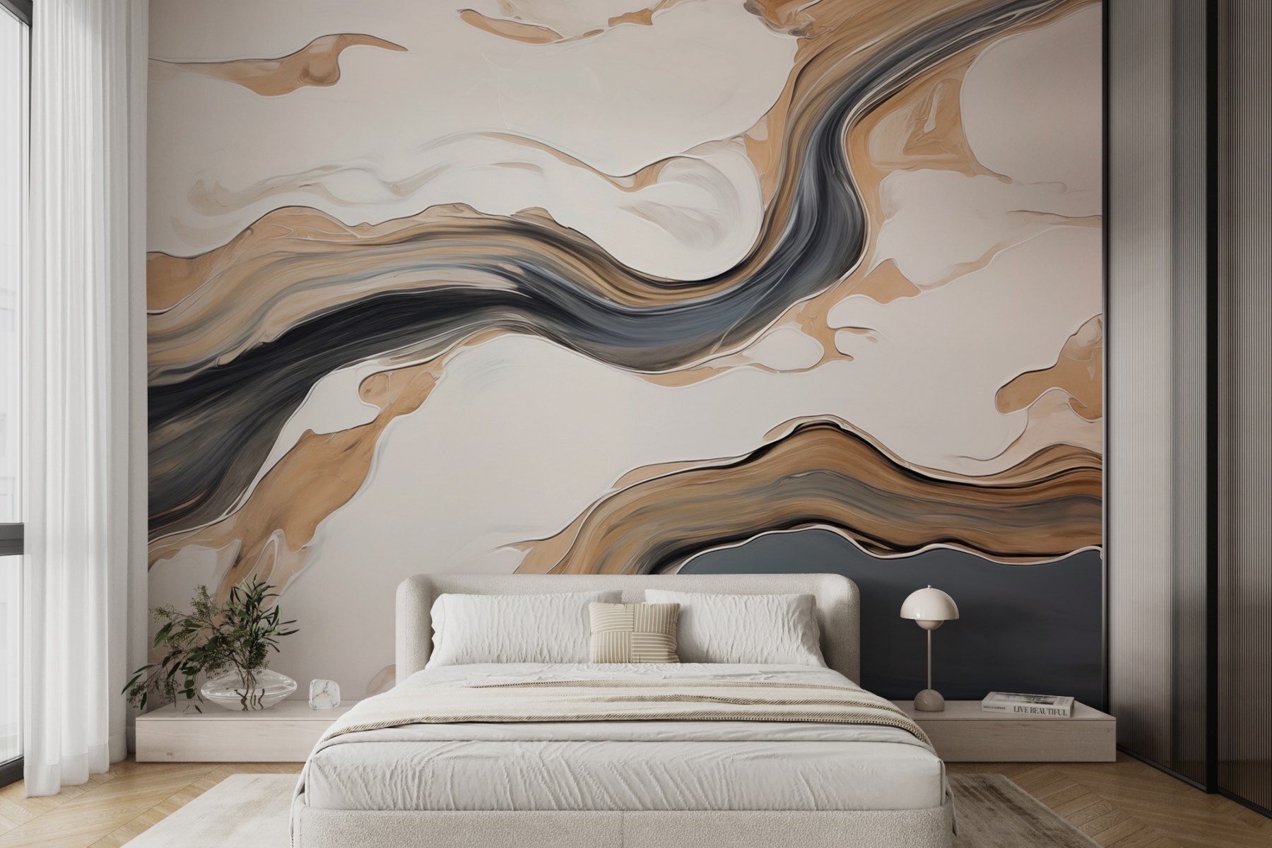 Transforming a wall with this mural of white and black swirls is like inviting a piece of modern art into your space. Picture it—your living room or bedroom, instantly elevated with those flowing, organic shapes that dance across the surface. It’s bold yet mellow, making it easy to blend with any decor. Imagine sipping coffee while soaking in the calm vibe, each swirl sparking a little inspiration or daydream. Great for those who love unique touches without the fuss—this mural’s easy to apply and sure to be a conversation starter. Make a statement, but keep it cool.