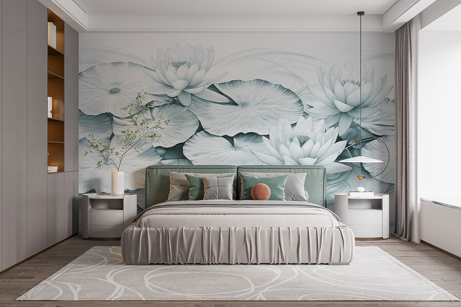 Transform any wall into a serene escape with this stunning mural featuring a charming group of lily pads and delicate leaves. Imagine stepping into a tranquil pond, where time slows and the hustle of daily life fades. The soothing shades and flowing lines create a light, airy vibe—perfect for your favorite reading nook or a calming bedroom retreat. Friends will stroll in, take a deep breath, and exclaim, “Wow, it feels like a spa in here!” It’s like bringing a piece of nature indoors without the pesky mosquitoes. Plus, it’s a nice conversation starter—who doesn’t love a mural that whispers peace?