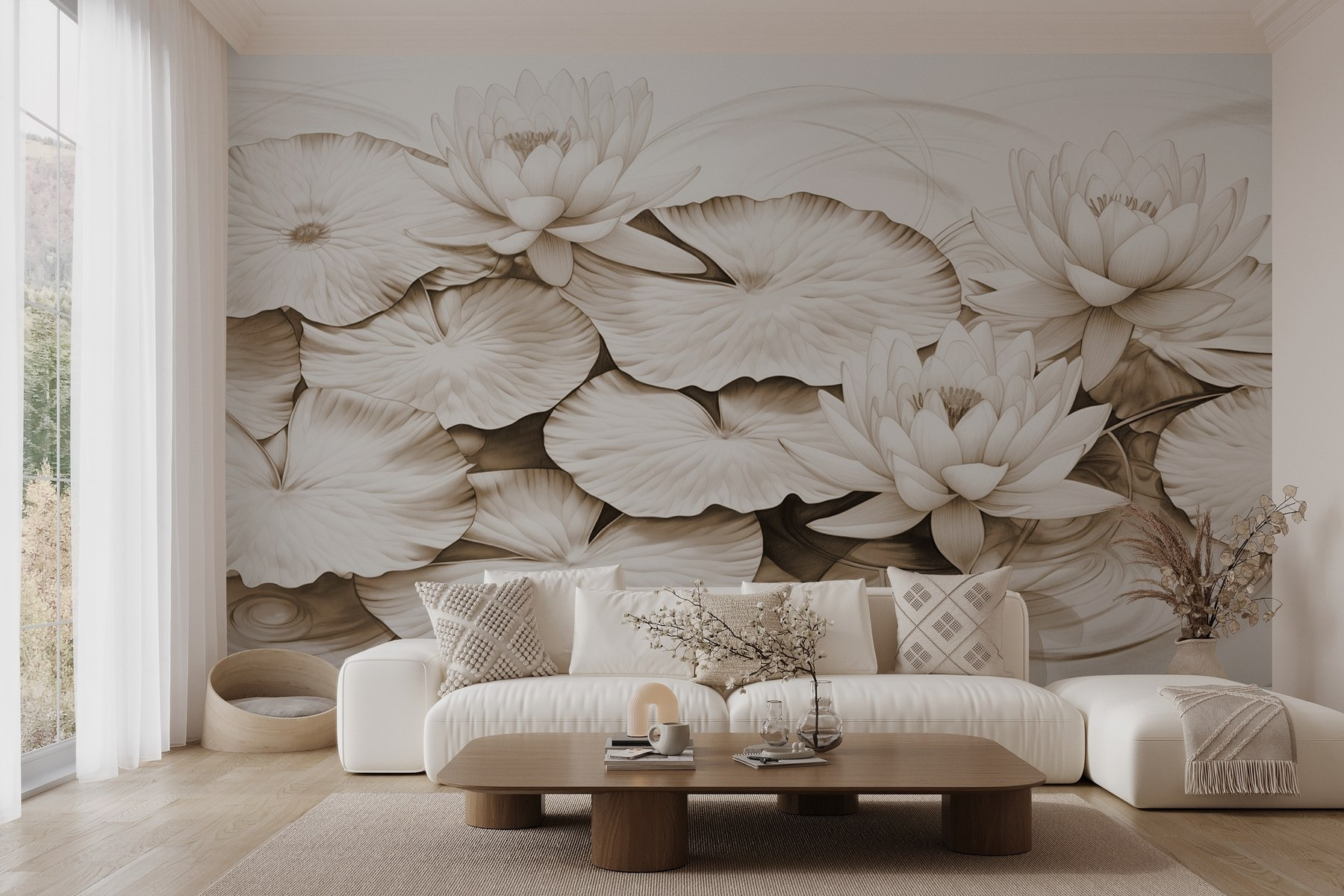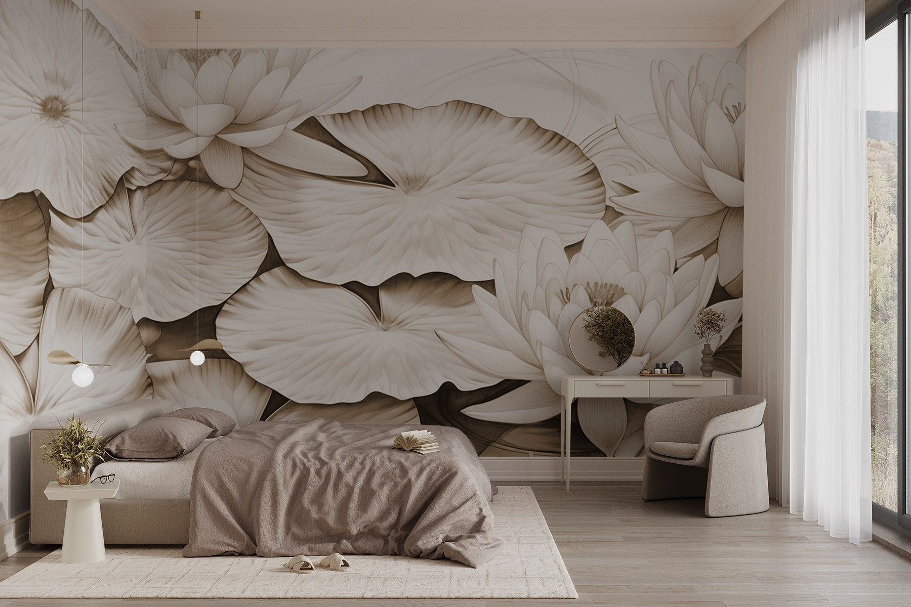 Transform any space into a serene oasis with this stunning wall mural of lily pads and water lilies. Imagine stepping into a calm, hidden pond each time you enter the room. The soft, muted tones create a soothing vibe, perfect for a cozy reading nook or a peaceful bedroom retreat. It’s like bringing nature inside—without the bugs! Picture sipping your morning coffee, gazing at these delicate blooms. The elegant details draw the eye, making it a great conversation starter too. A simple, beautiful touch can turn a dull wall into a delightful escape.
