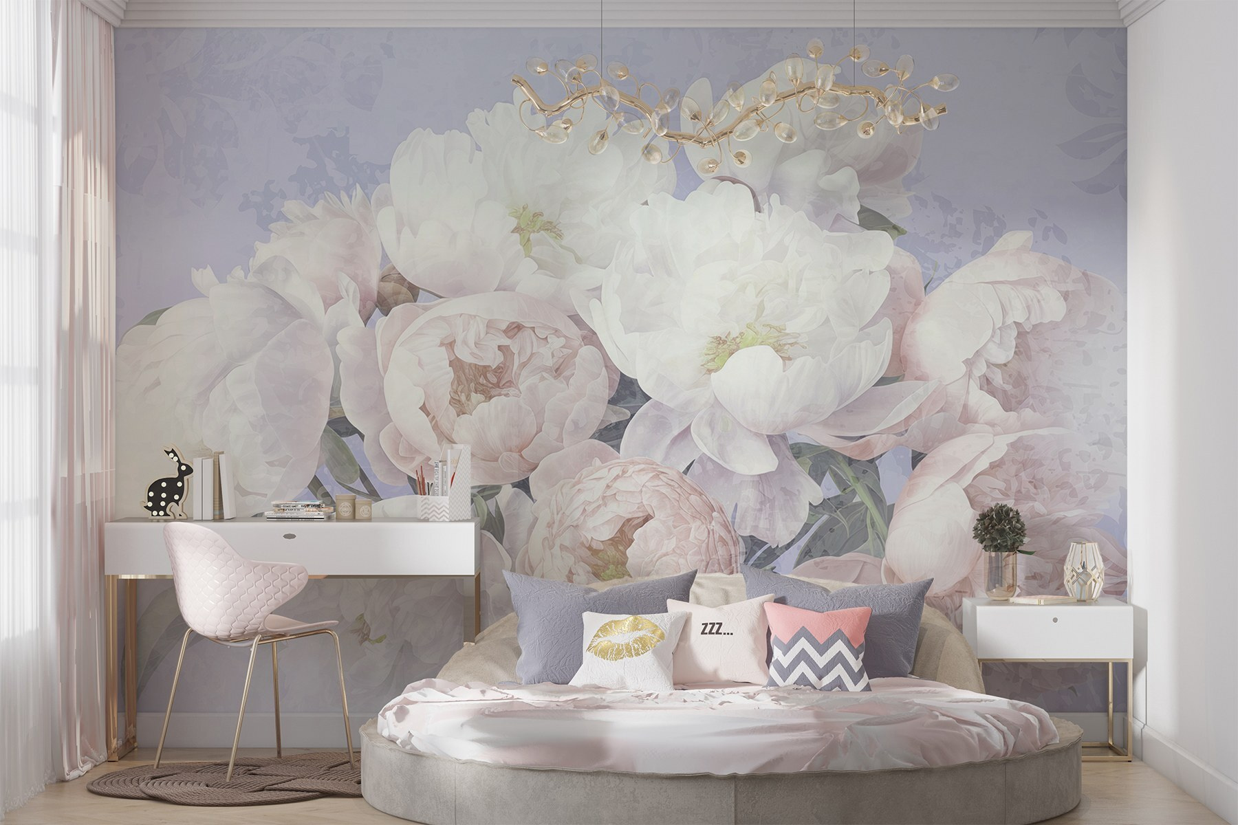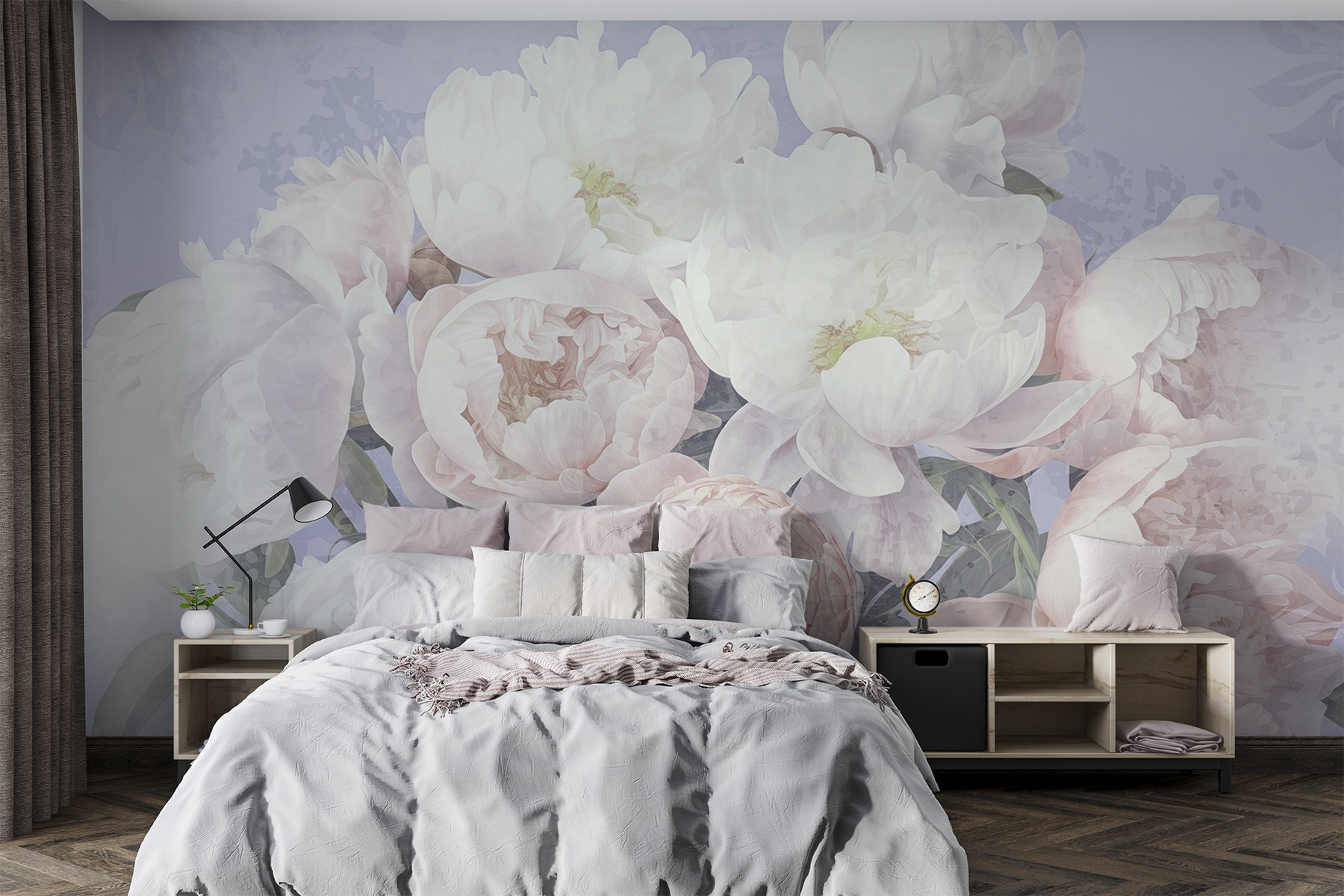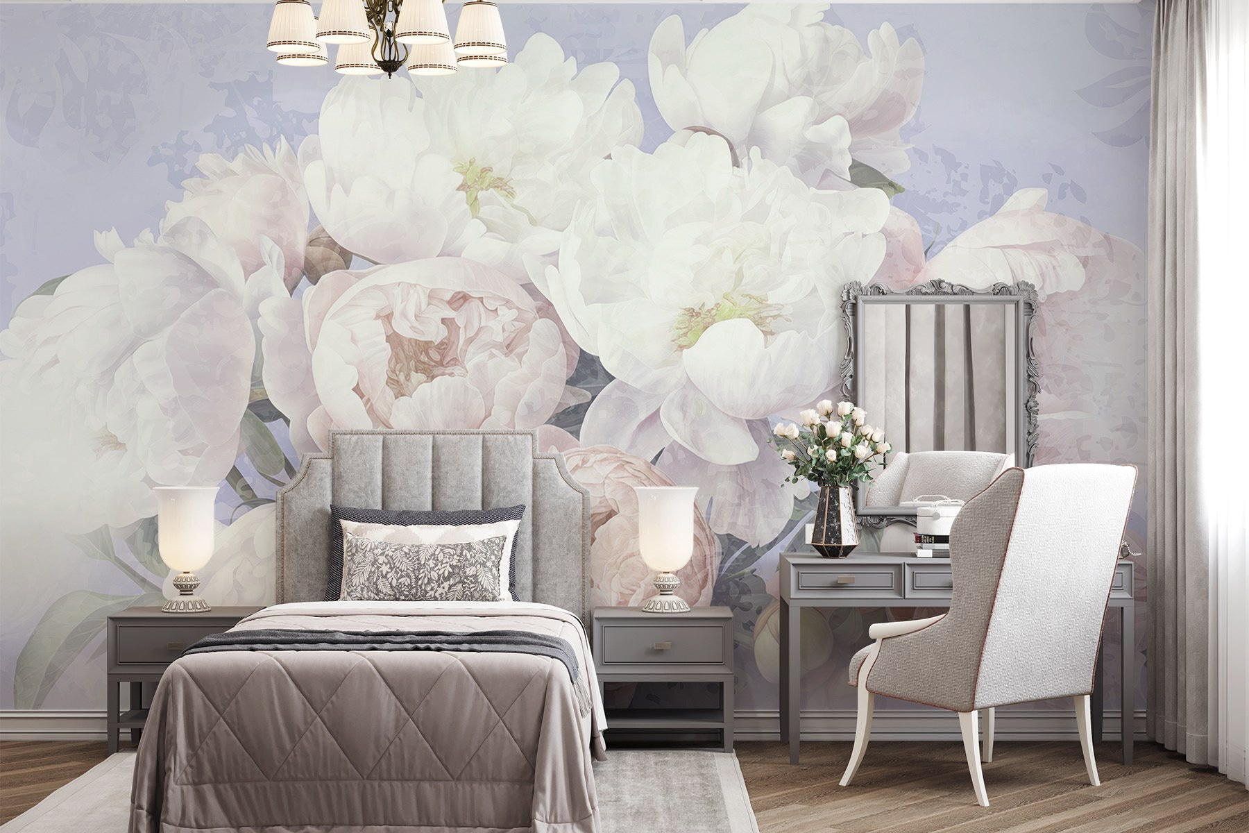 Transform any space into a dreamy garden with this enchanting mural featuring a bouquet of white and pink flowers. Imagine walking into a room and feeling like you’ve stepped right into a peaceful oasis—soft colors and a gentle touch of nature can do that, right? This mural isn’t just wallpaper; it’s a mood booster. Looking at those peonies might just remind someone of springtime picnics and lazy afternoons. Plus, it’s perfect for brightening up dull walls or adding a splash of charm to a cozy nook. Let your walls bloom!