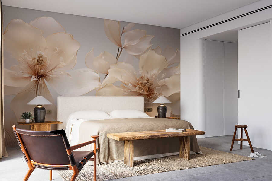 Transform your space into a blooming paradise with this stunning mural of delicate blooms in soft colors. Imagine walking into a room that feels like an endless spring, where the flowers seem to dance on the wall—no watering can required. It’s like having a secret garden right at home, whispering tales of sunny days and gentle breezes. Perfect for adding a touch of romance or just a dash of whimsy, this mural invites you to pause and soak in the beauty. Friends visiting might even mistake it for a fresh bouquet. Why not bring the outdoors in, and let each glance at these flowers brighten your day?