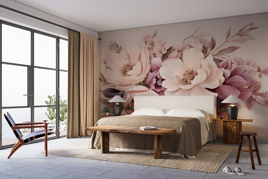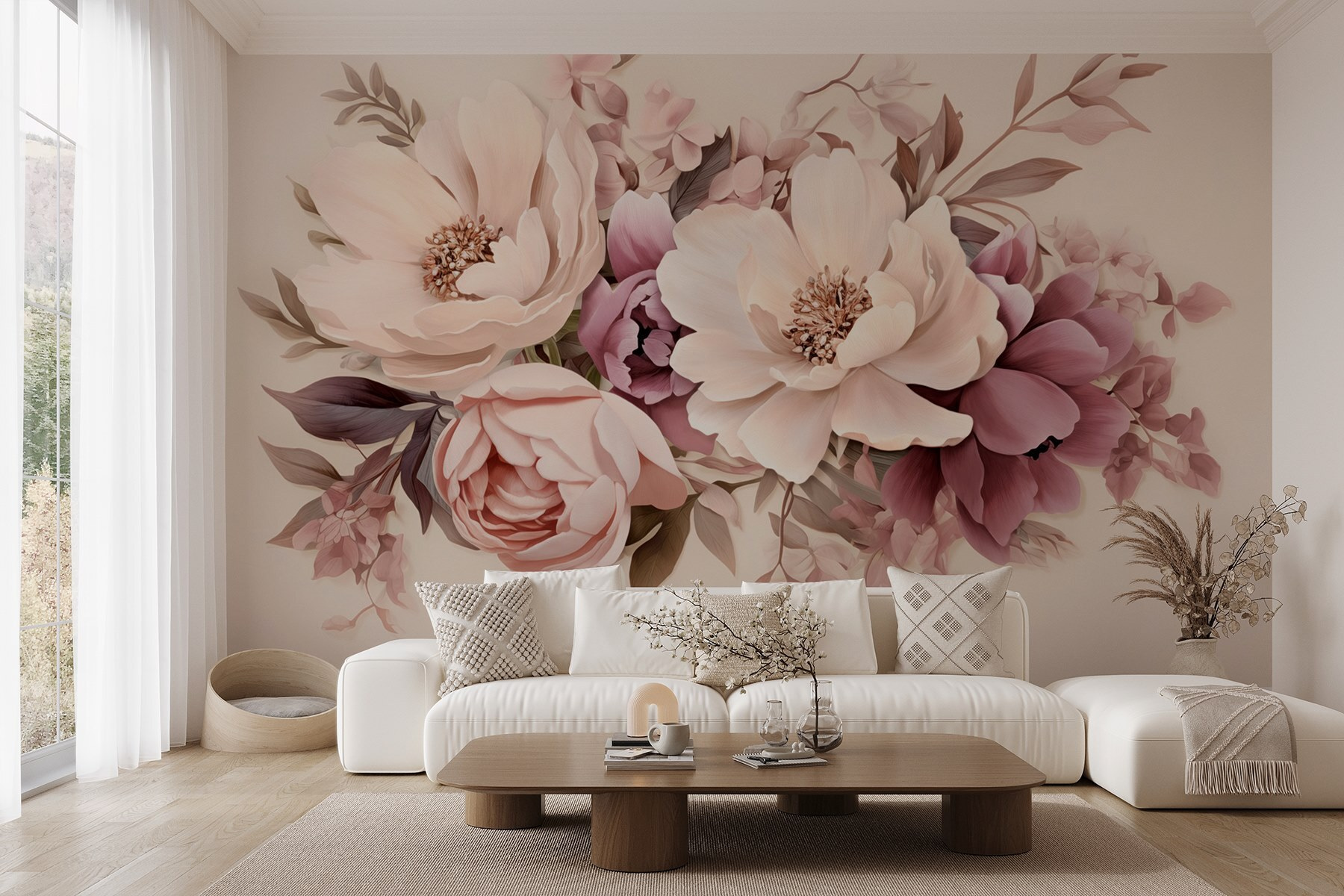 Brighten any space with this lovely wall mural featuring a cheerful group of flowers on a soft white backdrop. It’s like bringing a fresh bouquet indoors without the need for a watering can or worrying about pollen allergies. Imagine waking up to find these stunning peonies and delicate blossoms greeting you each morning—it’s bound to put a smile on anyone’s face! Perfect for a cozy living area or a serene bedroom, this mural adds a touch of nature’s beauty that’s both uplifting and calming. Who wouldn’t love a little floral magic to liven up their walls? Whether it sparks joy or just gives that “wow” factor, it’s sure to become the talk of the room.