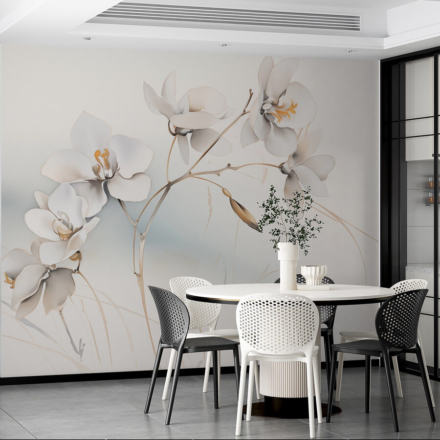 Transform your space with this enchanting wall mural featuring delicate white flowers on a branch. Picture it—stepping into a room that feels instantly lighter and more inviting. The soft petals dance in gentle hues, bringing a serene touch to any wall. Imagine sipping your morning coffee while gazing at this calm beauty; it’s like having a small garden indoors without the upkeep. Perfect for brightening up a cozy nook, this mural adds an airy vibe that makes everything feel just a bit more magical. It’s not just decor; it’s a spark of joy in everyday life!