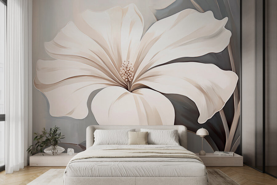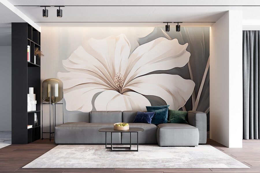 Transform your space with this stunning wall mural featuring a white flower set against a soft gray backdrop. Imagine stepping into your room and instantly feeling that refreshing, tranquil vibe—like a gentle garden stroll without the muddy shoes. The flower’s elegant curves and delicate petals invite calmness, perfect for a cozy reading nook or a serene bedroom. It’s almost like bringing nature indoors, minus the bees. Pair it with soft textiles and warm lighting for an inviting atmosphere—a place where relaxation becomes the norm.