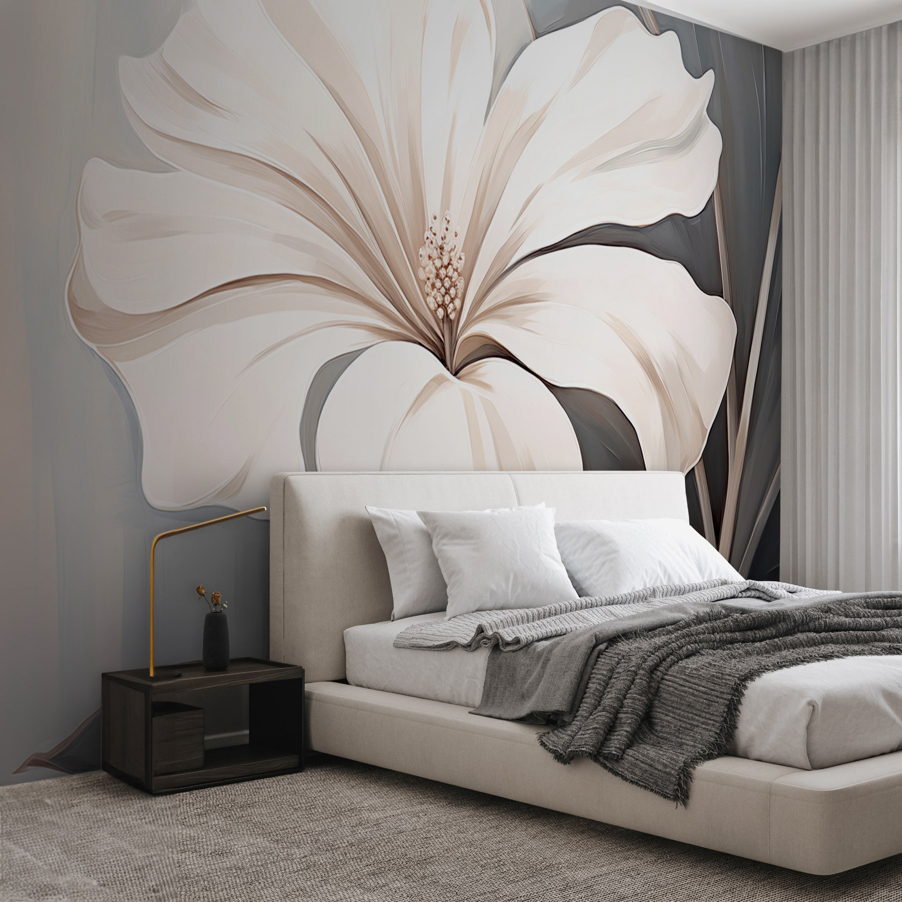 Transform your space with this stunning wall mural featuring a white flower set against a soft gray backdrop. Imagine stepping into your room and instantly feeling that refreshing, tranquil vibe—like a gentle garden stroll without the muddy shoes. The flower’s elegant curves and delicate petals invite calmness, perfect for a cozy reading nook or a serene bedroom. It’s almost like bringing nature indoors, minus the bees. Pair it with soft textiles and warm lighting for an inviting atmosphere—a place where relaxation becomes the norm.