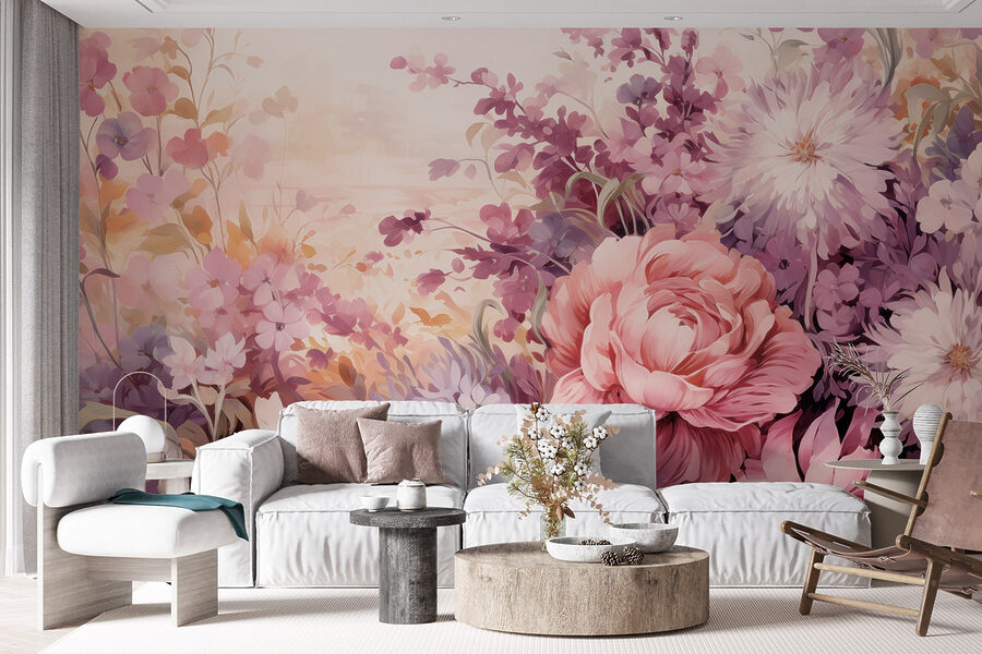 Transform your space into a blooming oasis with this enchanting wall mural featuring a stunning array of flowers and delicate leaves. It’s like bringing a spring garden indoors—without worrying about watering or pesky pollen. Picture this: a cozy reading nook where sunshine spills in, and every glance at the mural makes the day feel a bit brighter. The soft pastels and gentle brushstrokes create a serene vibe, perfect for unwinding after a long day. It can totally spark joy and maybe even inspire a little dance while dusting off those cozy blankets. Inject some personality into your home with this gorgeous display of nature’s beauty—it’s bound to be a conversation starter!