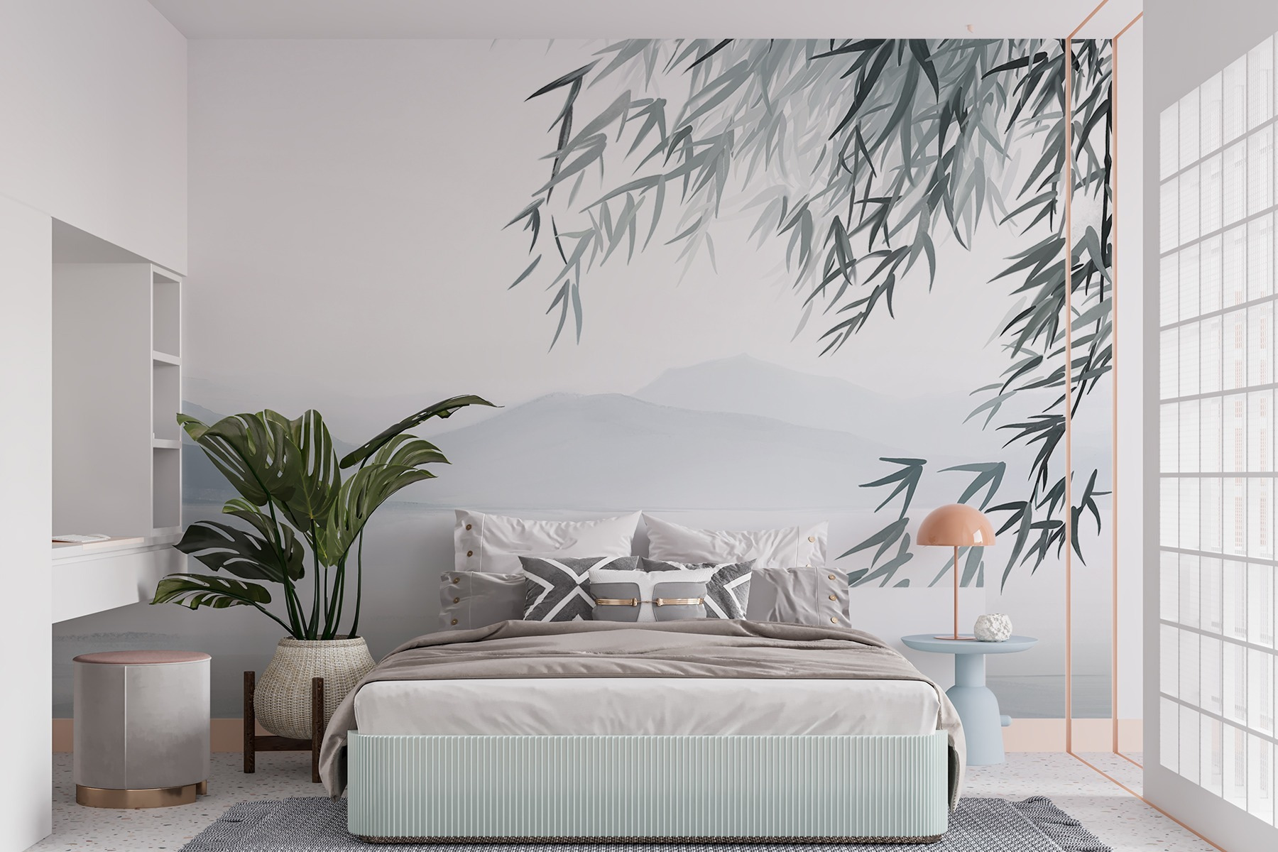 Transforming a wall can feel like a mini-vacation, and this mural is your ticket to tranquility. Picture soft watercolors dancing across your space, featuring peaceful trees and misty mountains that whisper serenity. It’s like your room took a deep breath and exhaled calm vibes.