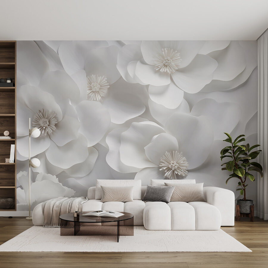 Transform your space into a tranquil floral haven with this stunning wall mural featuring a group of elegant white flowers. Imagine walking into a room where the walls bloom with softness and serenity—perfect for creating a peaceful retreat. Each petal seems to float, inviting everyone to take a closer look. This mural doesn’t just decorate; it whispers calm vibes, elevates your mood, and brings an airy feel to your home. Whether it’s the living room, bedroom, or even an art studio, this beautiful arrangement will surely spark joy and inspire creativity. Who wouldn’t want to be surrounded by such natural beauty?