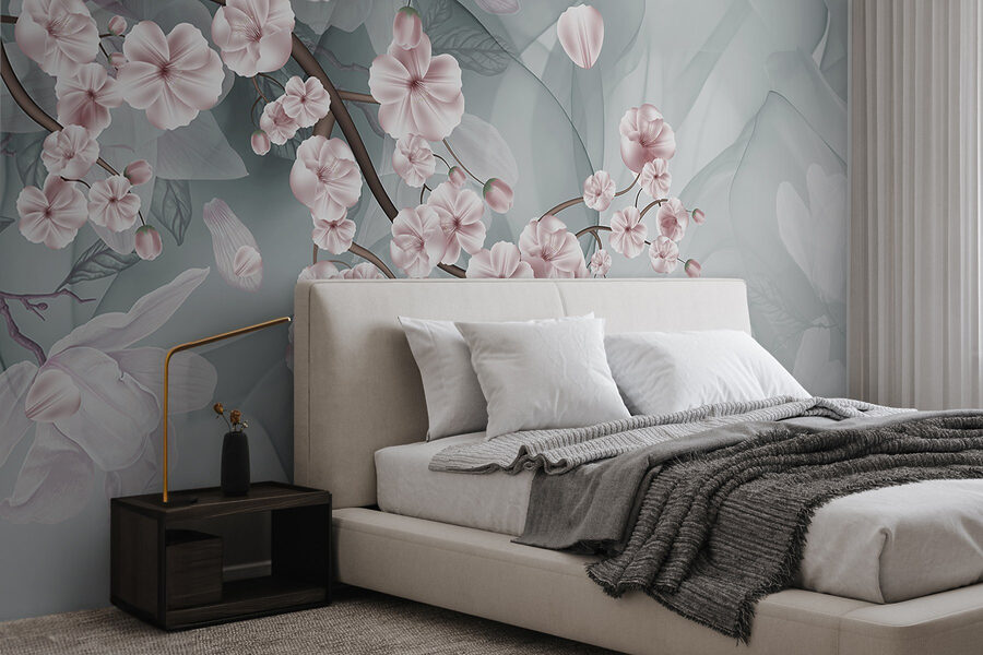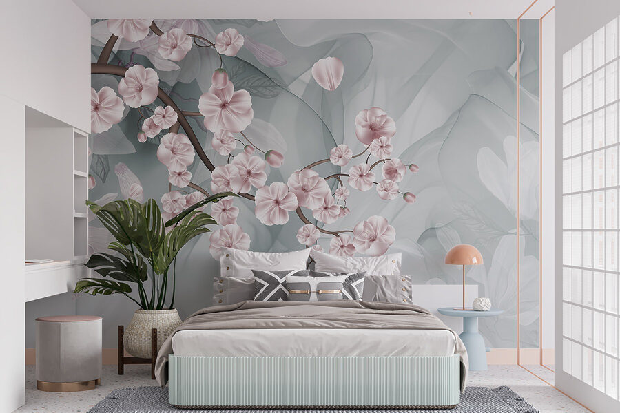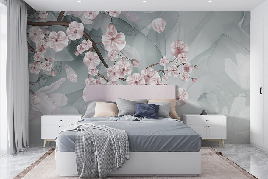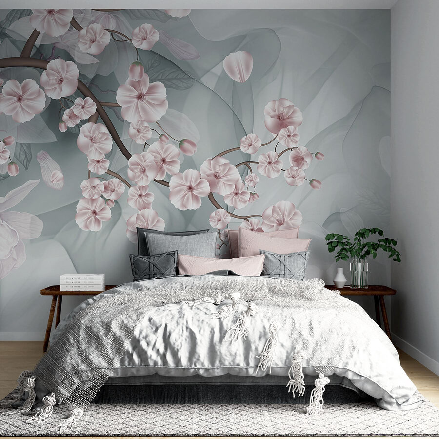 Step into a tranquil world with this lovely mural featuring branches adorned with delicate pink and white flowers. Imagine your space transforming into a serene Japanese garden, where each glance brings a gentle reminder of springtime bliss. The soft hues blend beautifully, creating an inviting atmosphere that whispers relaxation. Picture yourself curling up with a good book, surrounded by this floral embrace, or hosting friends who can’t help but compliment your unique decor. It’s like having a garden right on your wall—minus the watering can! Who knew nature could be so easy to maintain?