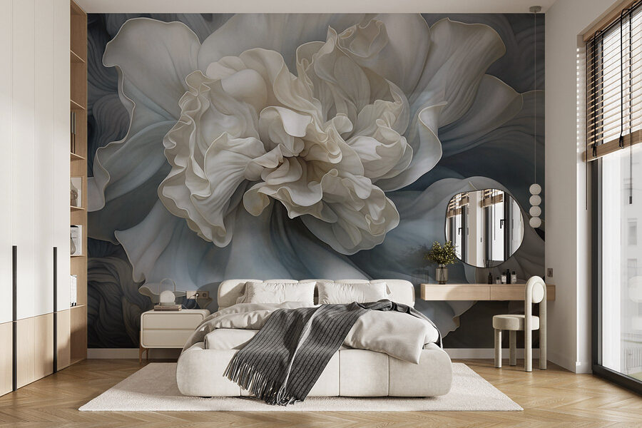 Transform your space with the enchanting Wall Murals White Flower with Ruffles. Imagine waking up to a bloom that seems to float on your wall, petals ruffled and ready to dance in the breeze. It’s like bringing a little garden party right inside, minus the pesky bugs. The soft colors create a calming vibe, perfect for sipping coffee on lazy mornings or unwinding in the evening. Family and friends will surely compliment your taste (maybe even ask where you found it). It’s more than just decor; it’s an experience, a mood, a dash of charm—ready to breathe life into your walls with whispers of floral elegance.