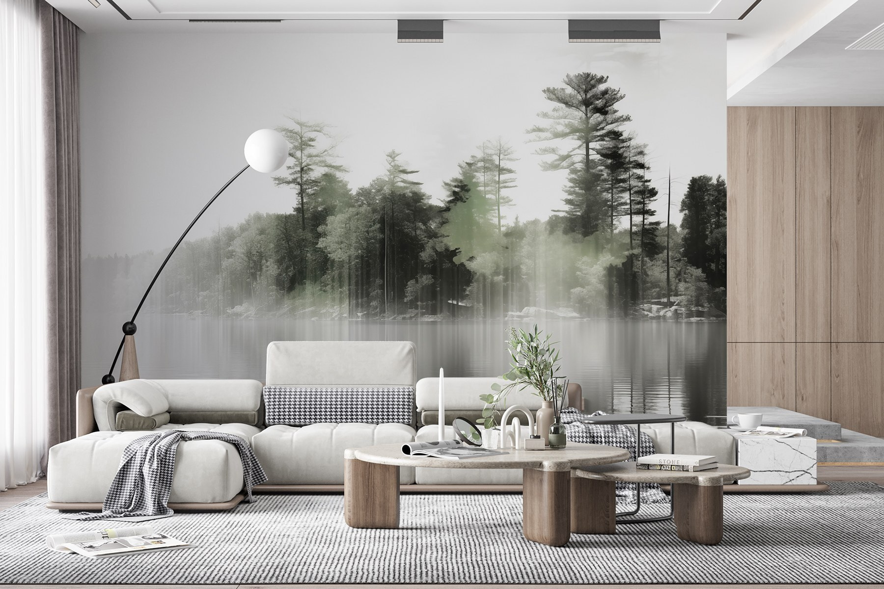 Transform your space into a serene escape with this captivating wall mural featuring a tranquil body of water framed by elegant trees, all cloaked in a gentle fog. Imagine standing in front of it, feeling the calm wash over you, like a peaceful morning by a quiet lake. It’s a reminder of those lazy summer afternoons spent outdoors, where the only sounds are the rustle of leaves and the soft lapping of water against the shore. This mural adds a touch of nature’s charm, creating an atmosphere that invites relaxation and daydreaming—perfect for any room needing a cozy, inviting vibe. Whether it’s a bedroom, living area, or a nook where you sip your tea, this piece feels like a breath of fresh air. Plus, who doesn’t love a little fog to spark imagination? It’s a beautiful way to blend the outdoors with your indoor space.