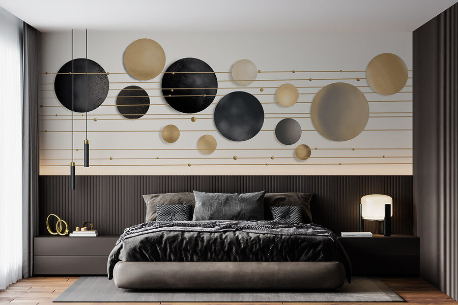 Transform your space with this captivating mural, a dance of circles and lines that brings a fresh vibe to any room. Imagine waking up to a wall that feels like a modern art gallery—bold yet gentle on the eyes. The interplay of colors and shapes invites creativity. It’s like a conversation starter, drawing friends in to admire its unique design. Picture cozy nights in, basking in soft lighting, with this mural setting the mood. It’s not just decor; it’s a vibe, a little piece of artistry that adds warmth and personality to your space. Who knew circles and lines could spark such joy?