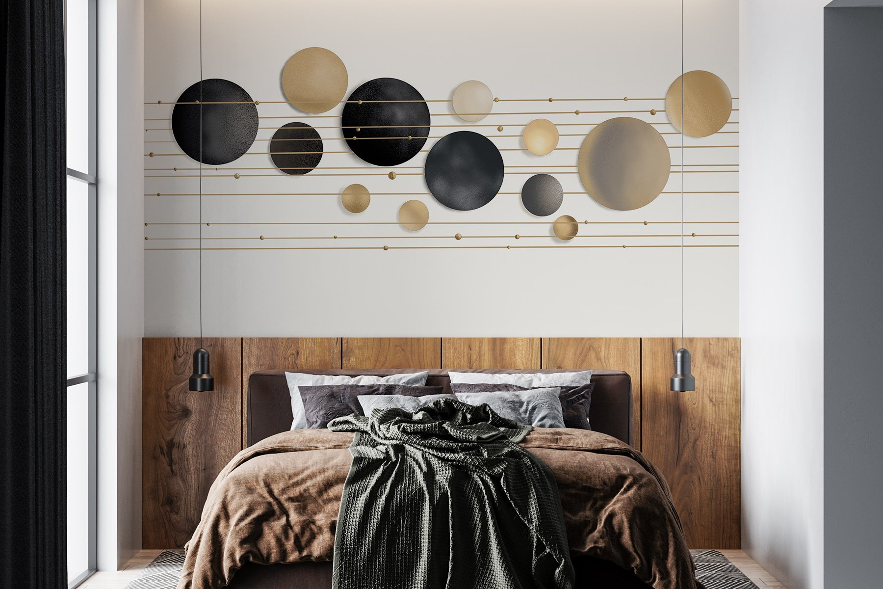 Transform your space with this captivating mural, a dance of circles and lines that brings a fresh vibe to any room. Imagine waking up to a wall that feels like a modern art gallery—bold yet gentle on the eyes. The interplay of colors and shapes invites creativity. It’s like a conversation starter, drawing friends in to admire its unique design. Picture cozy nights in, basking in soft lighting, with this mural setting the mood. It’s not just decor; it’s a vibe, a little piece of artistry that adds warmth and personality to your space. Who knew circles and lines could spark such joy?