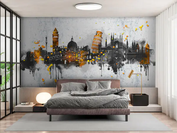 Wall murals Cityscape sketched against cloudy backdrop