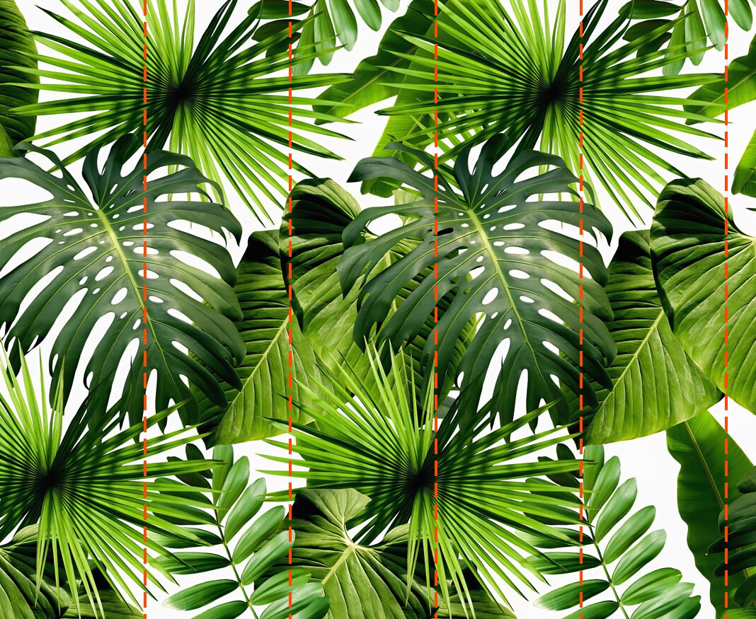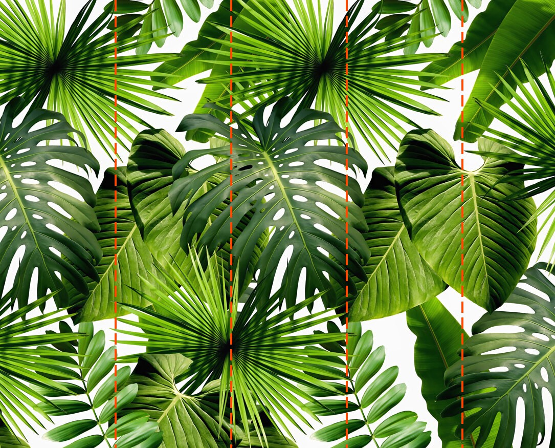 Wall mural Lush green leaves against patterned backdrop