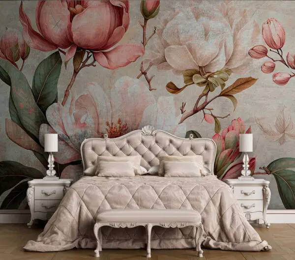 Wall mural White floral pattern with delicate texture