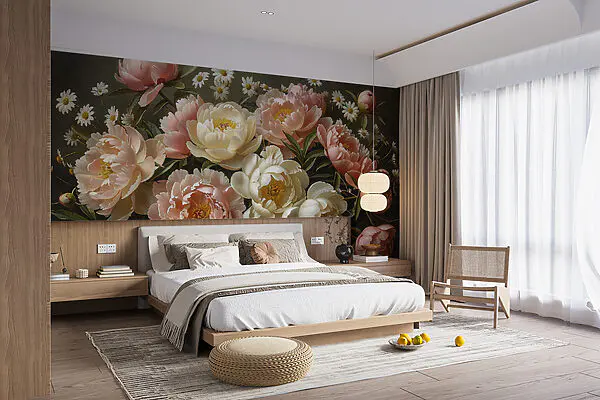Wall mural Elegant floral arrangement on dark backdrop