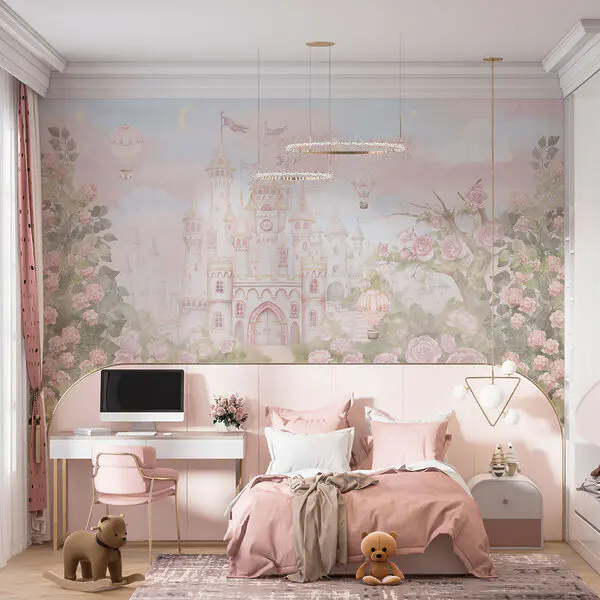 Wall murals Cartoon of a rabbit jumping in the air with butterflies