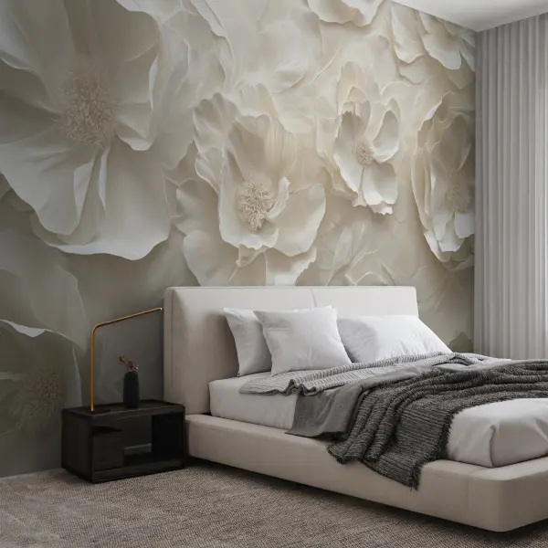 Photo wallpaper captures lifelike detail—petal textures and micro‑shadows. A floral wall mural is interpreted art: watercolor, sketch, or stylized patterns. Choose photo for drama, mural for mood.