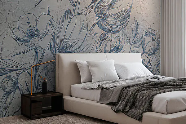 Wall murals Wallpaper with purple flowers and butterflies