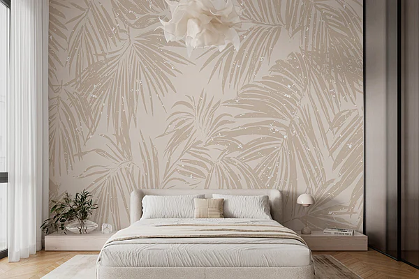 Wall mural Snowy mountain landscape with trees and a bird flying over it