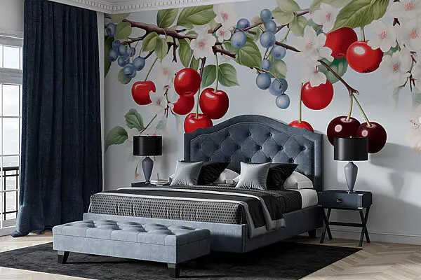 • -40% Sale! Sale! Wall murals Wall murals Cherry and blueberry on a branch (SKU: w01975)