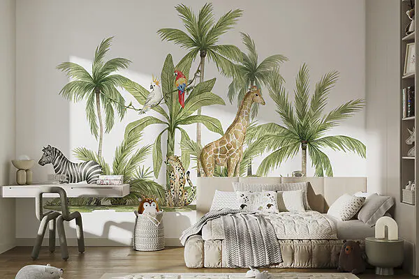 Wall murals Giraffes in a forest with trees and plants